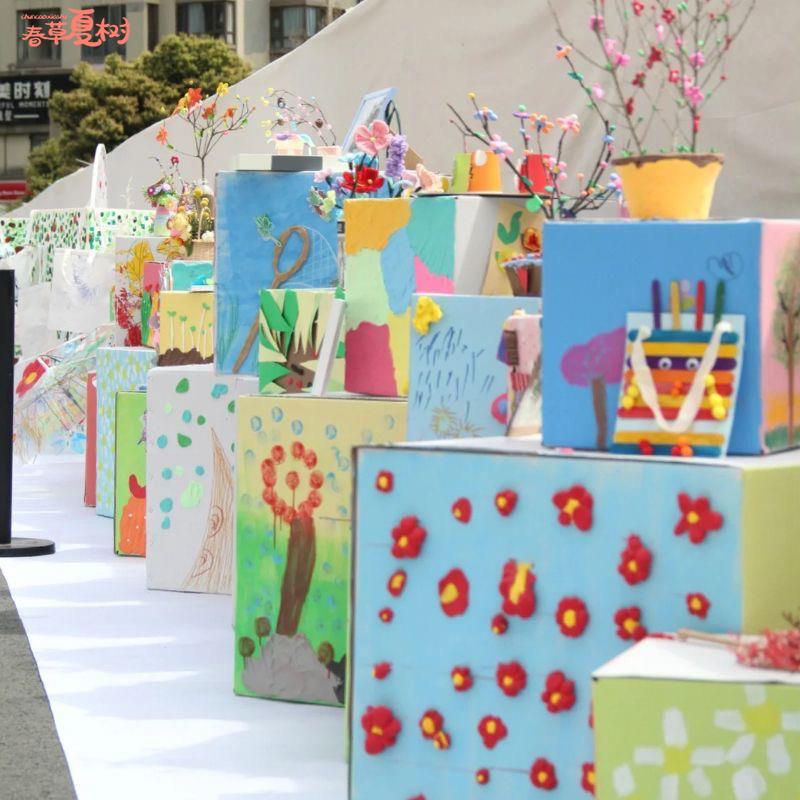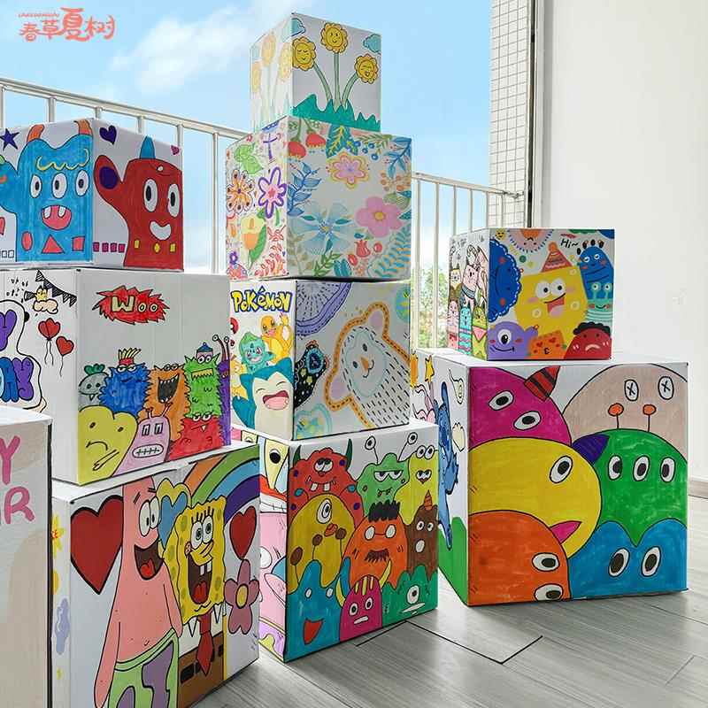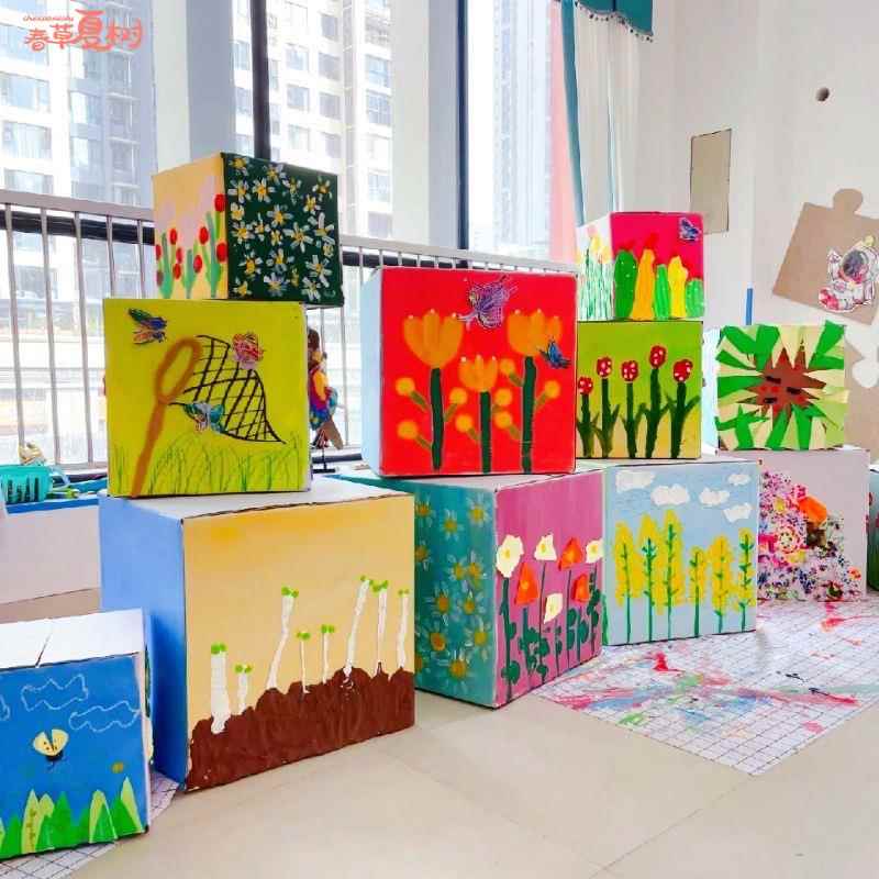 幼儿园画展美术diy美工区装 饰户外涂鸦材料白色纸箱投放绘画布置