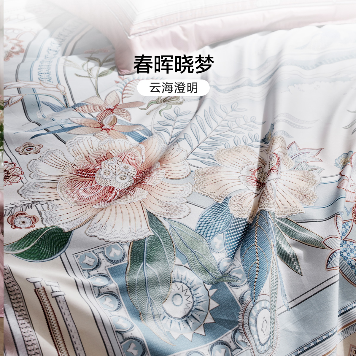 富安娜100支长绒棉四件套双股高端全棉被套海域弥章 专柜同款