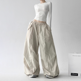 休闲秋冬阔腿裤 高腰直筒宽松香蕉卫裤 子 女春秋2025新款 灰色运动裤