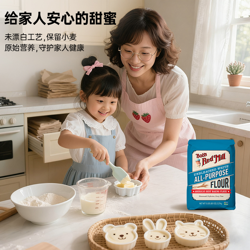 鲍勃红磨坊美国进口有机中筋面粉蛋糕专用粉小麦粉家用烘焙电饭煲