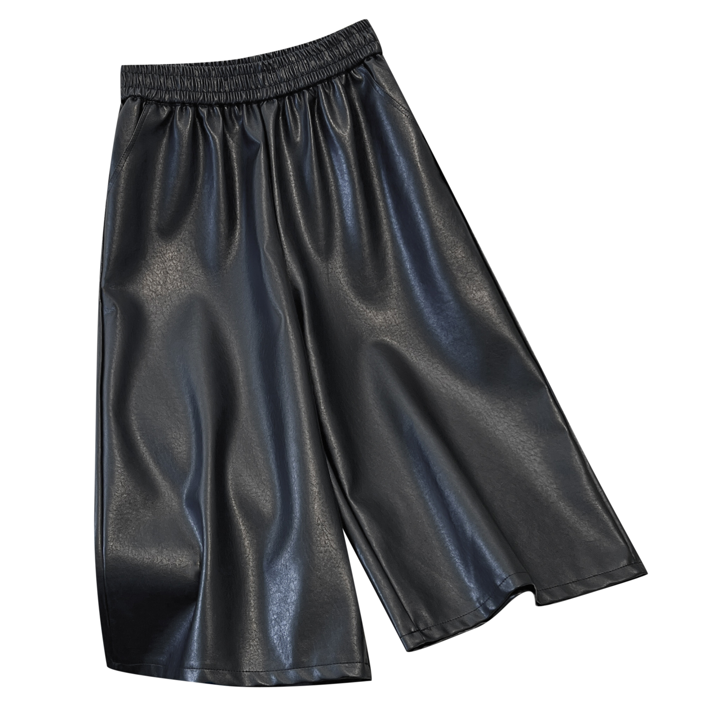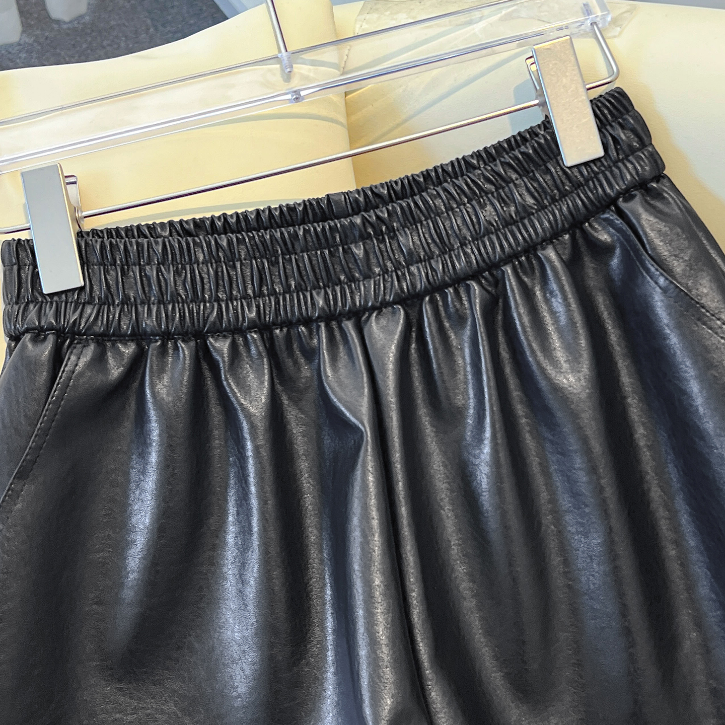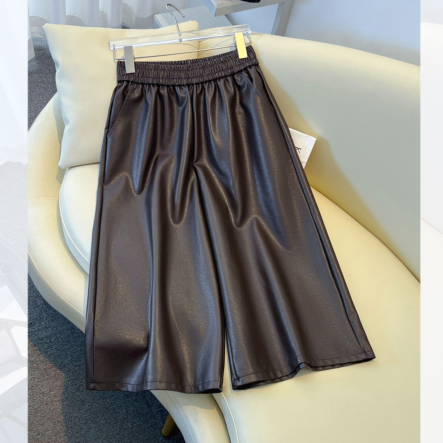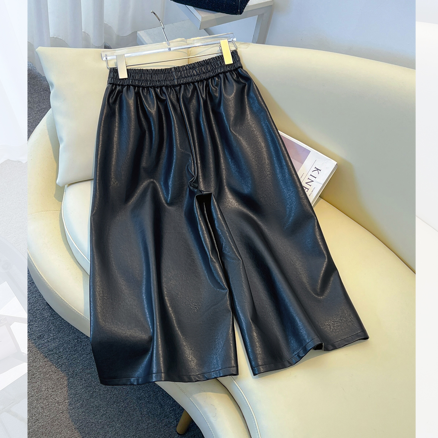 七八分直筒阔腿休闲裤 新款 小个子 女士2025早秋季 巨好看黑色PU皮裤