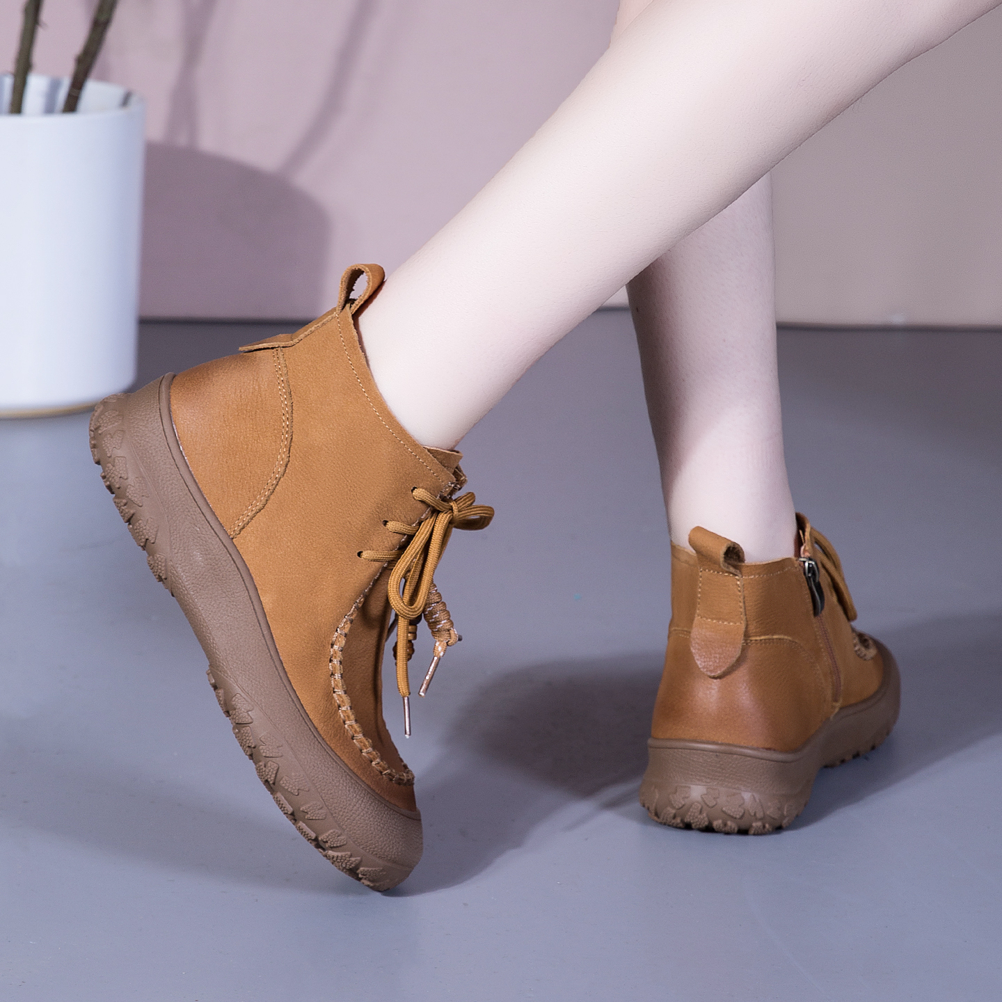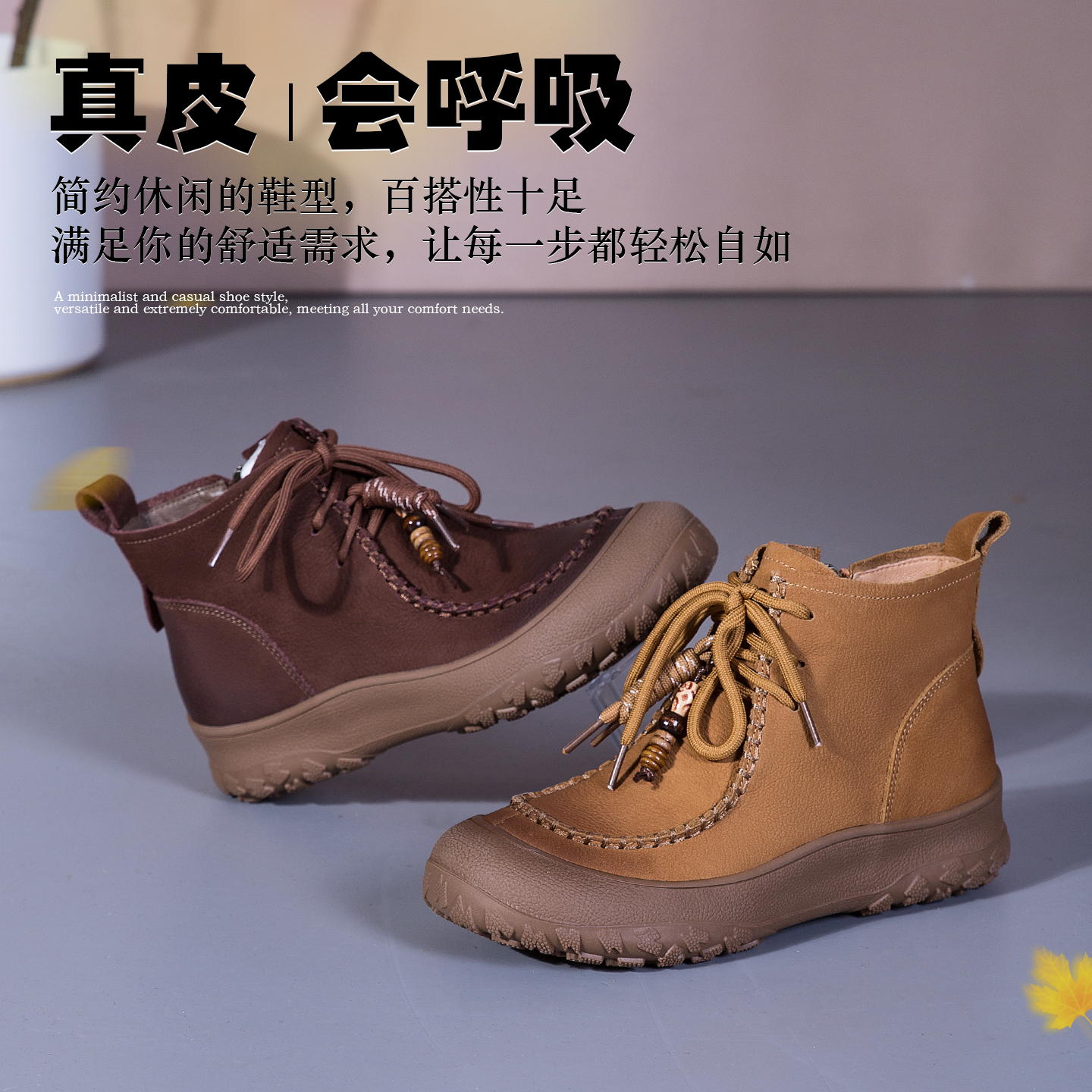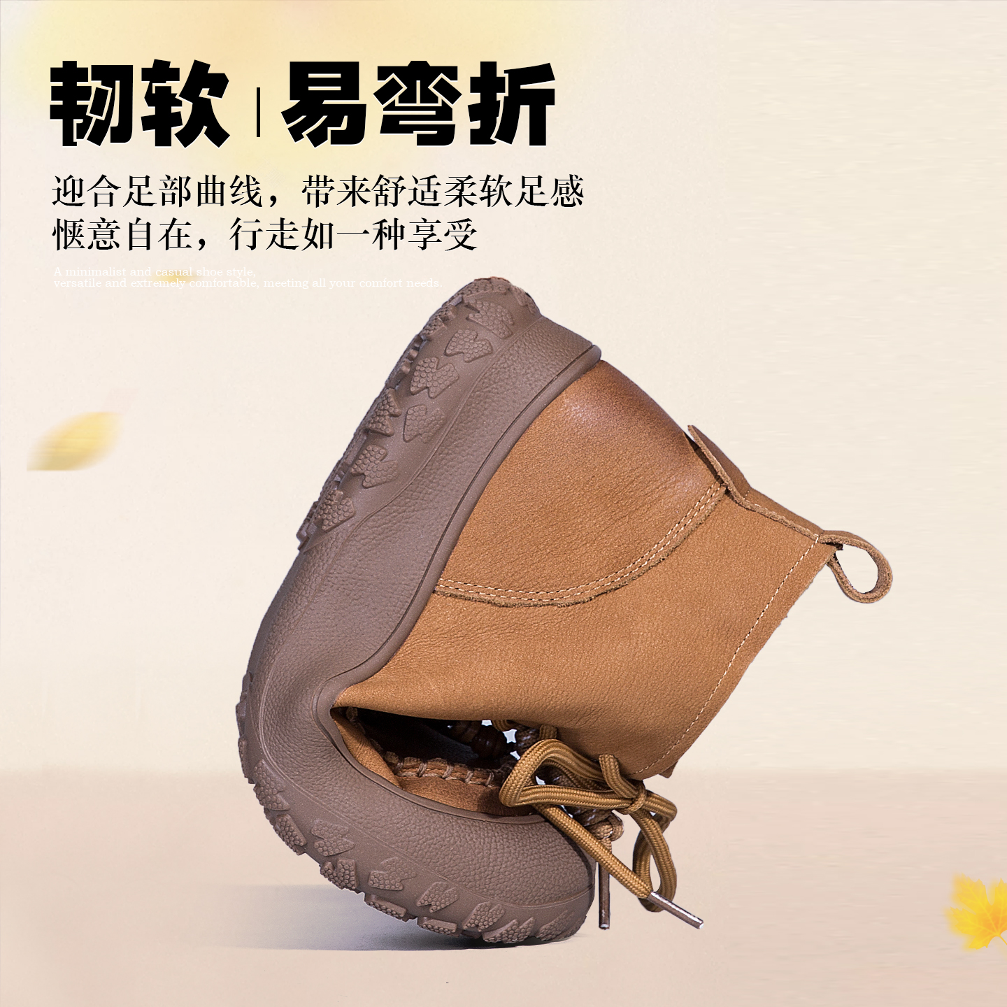 靴子女秋冬新款 2025真皮马丁靴高帮短靴软底防滑百搭休闲平底女鞋