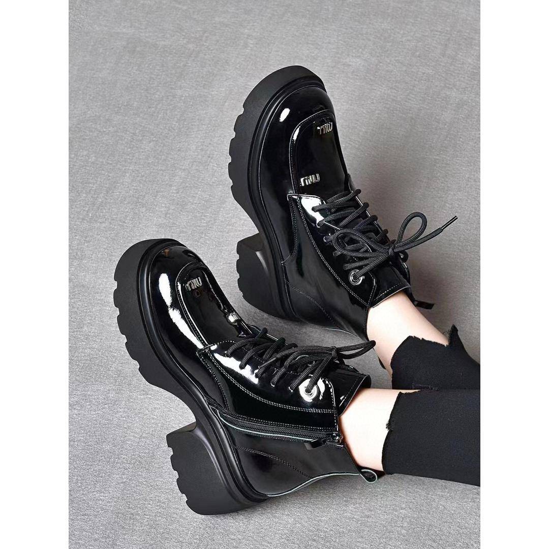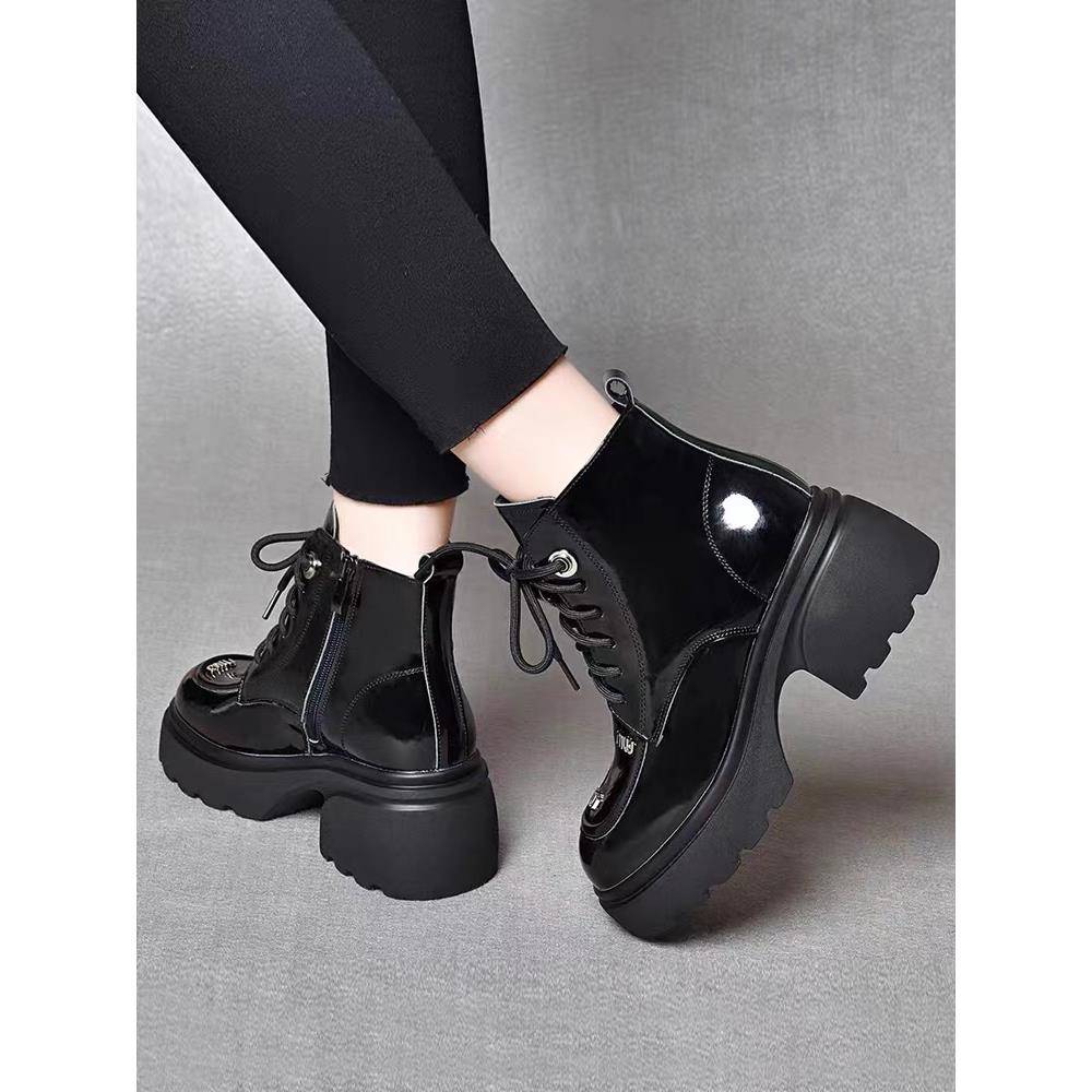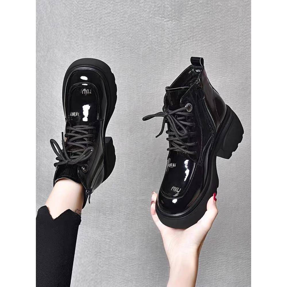 美拉德棕色靴子厚底黑色短靴 秋复古女鞋 英伦风马丁靴女款 2025新款