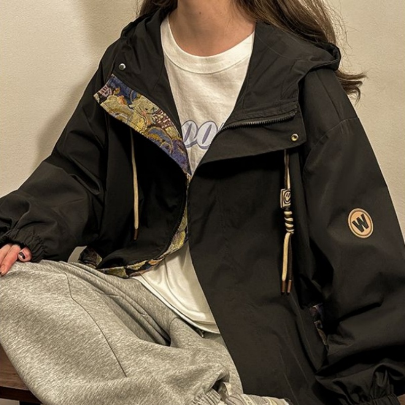 大码 新中式 春秋季 爆款 冲锋衣胖mm休闲夹克上衣 国风外套女2025新款