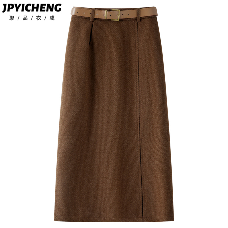COCOBELLA 复古格纹毛呢半身裙女秋冬加厚直筒裙HS923 美拉德穿搭
