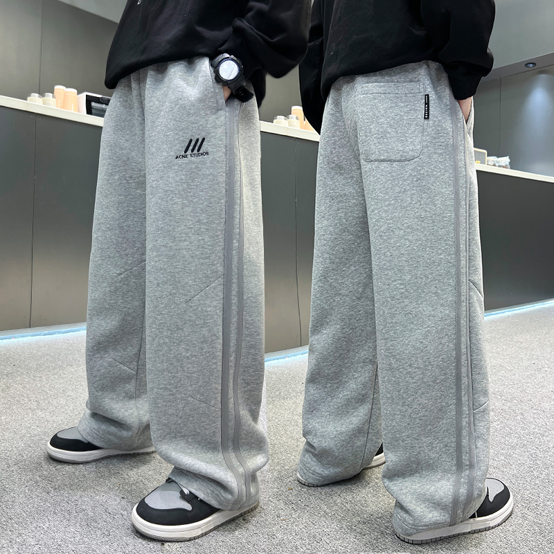 加绒街舞穿搭褶皱宽松休闲长裤 女秋冬季 子 灰色运动卫裤 自然涩美式