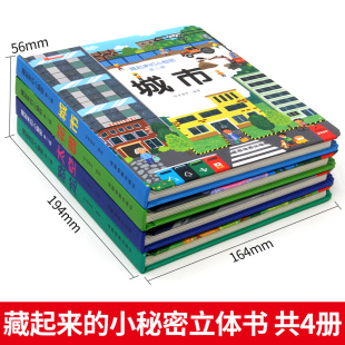 3岁婴幼儿绘本1 3岁一岁半两岁宝宝益智早教启蒙 小秘密第二辑四册 花园 太空 城市 藏起来 恐龙 儿童立体书3d翻翻书0 精装