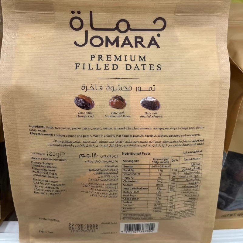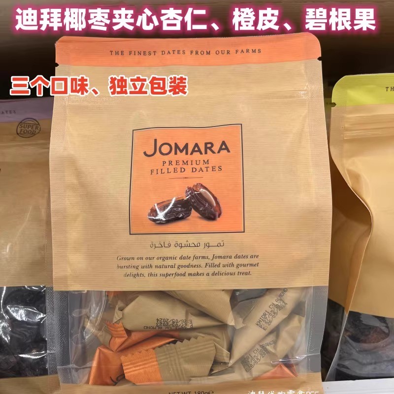 独立包装 现货迪拜代购 特产Jomara橙皮杏仁碧根果夹心椰枣180G袋装