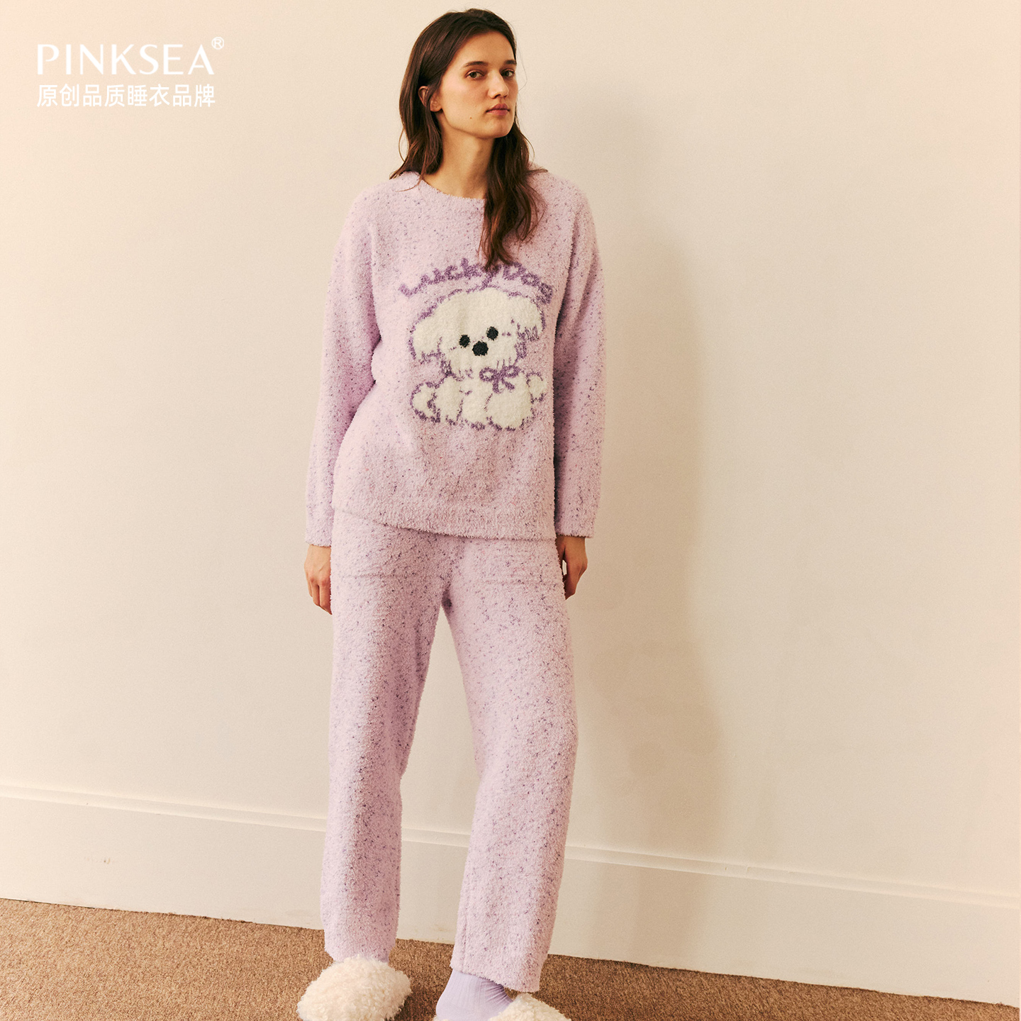 套装 新款 秋冬可爱小狗加厚保暖家居服冬季 Pinksea半边绒睡衣女款