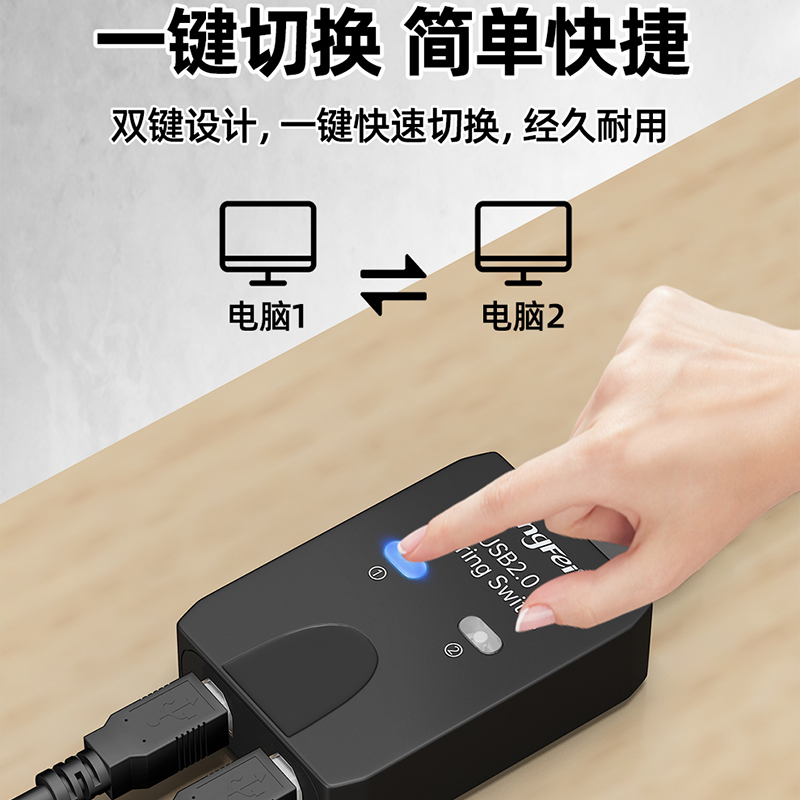 腾飞USB打印机共享器自动免网络切换分线器一拖二转换器两台多台电脑共用分接器一拖三拖四一接二连接转接头