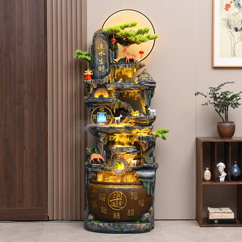 新中式 风水轮招财假山落地鱼缸流水摆件循环水雾化加湿开业乔迁礼