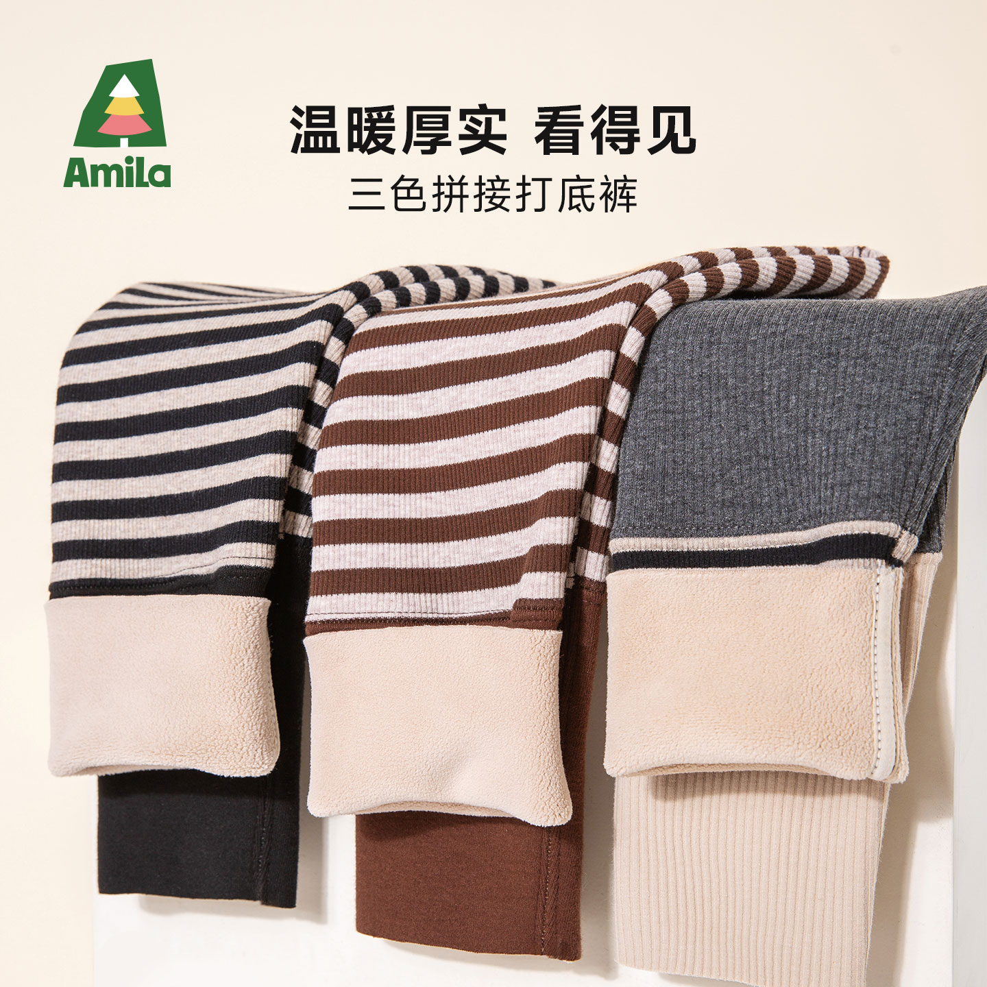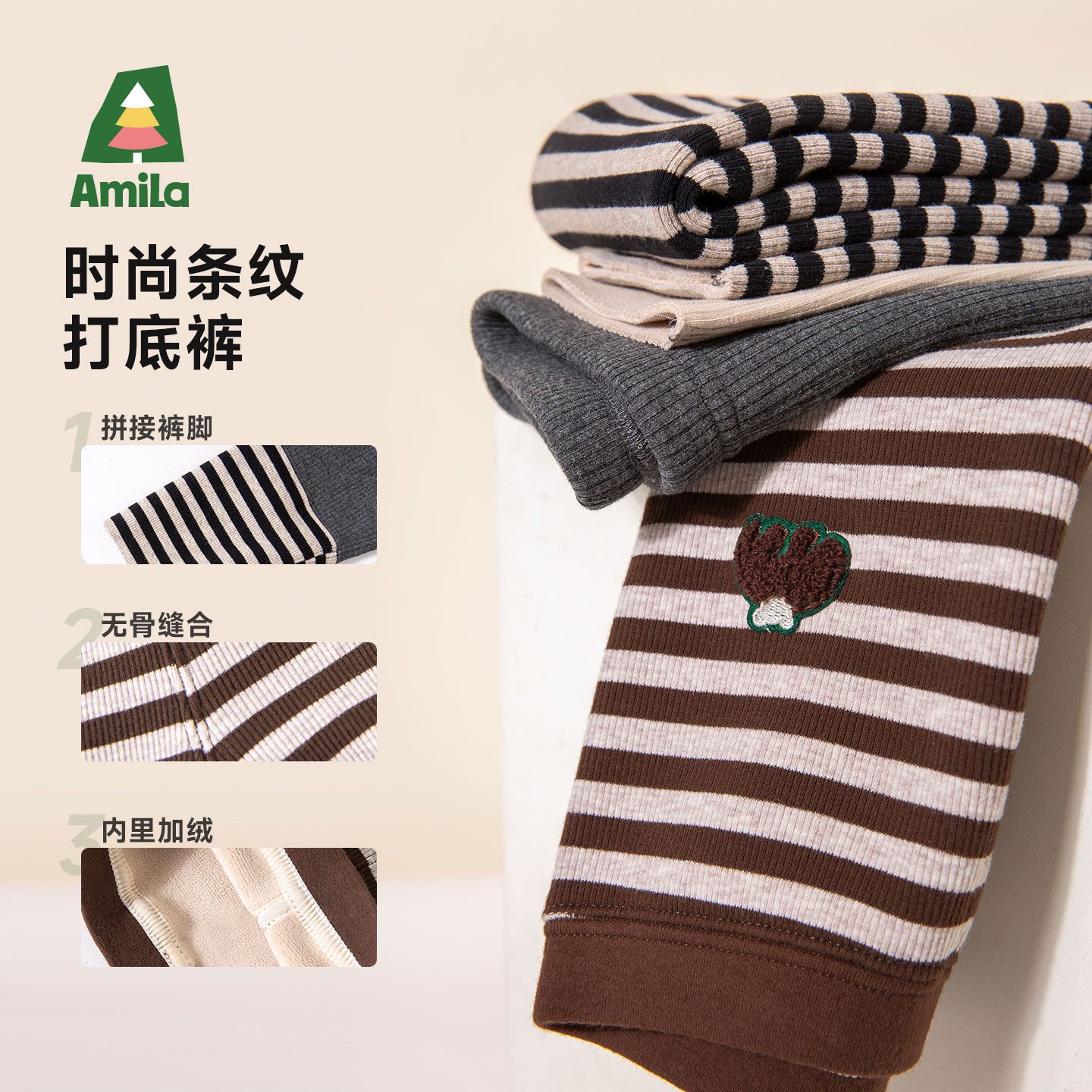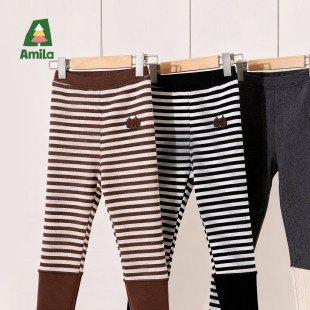 厚款 弹力加绒宝宝秋冬长裤 百搭休闲儿童条纹长裤 Amila女童打底裤