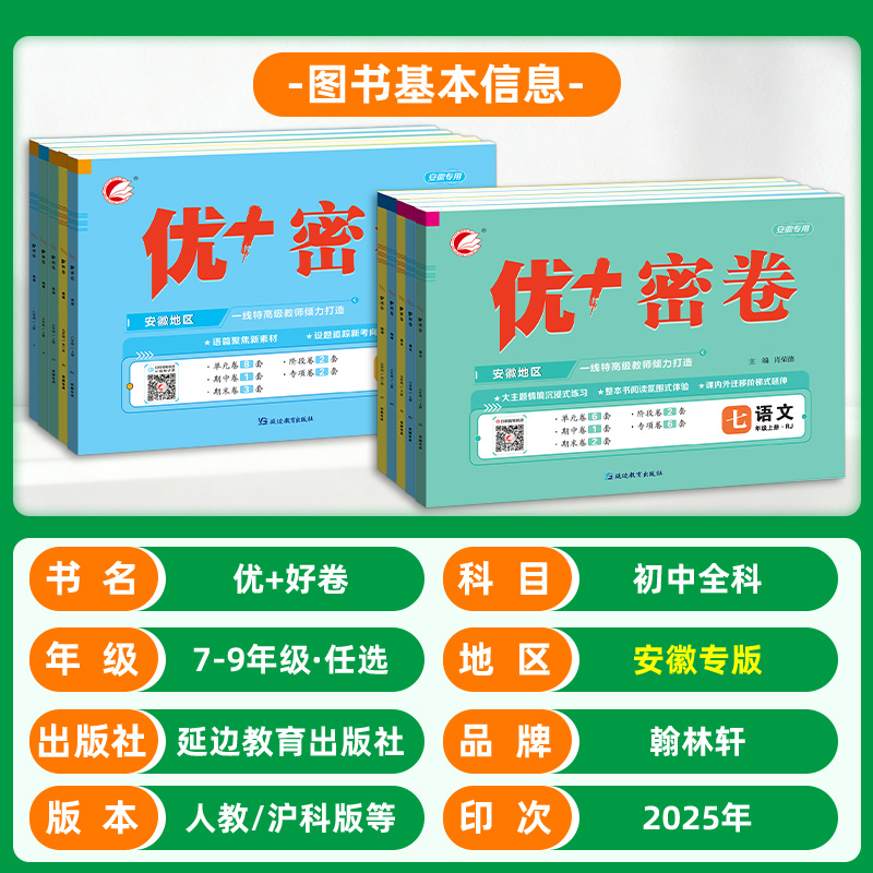 密卷优十优加试卷七八九年级语文数学英语物理化学政治地理生物历史789人教版 优 北师沪科外研星球湘教沪科沪粤 2025新版 安徽专版