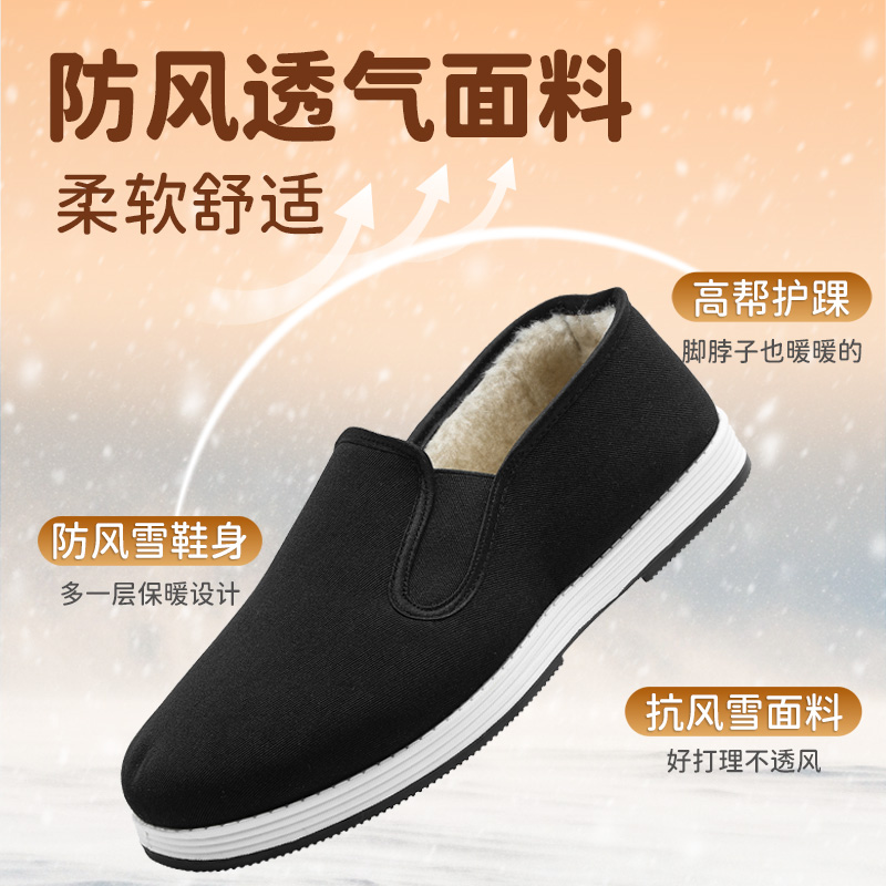 保暖棉鞋 秋冬正牌老北京布鞋 男防臭透气手工千层底一脚蹬黑色大码