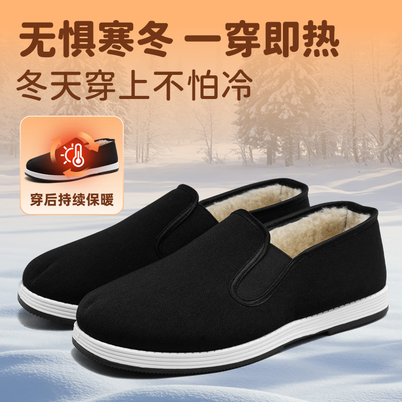男款 厚一脚蹬棉鞋 官方正品 爸爸休闲男士 加绒千层底冬季 老北京布鞋