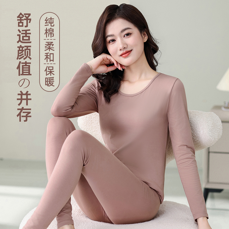 女套装 线衣裤 纯棉薄款 打底棉毛衫 学生 保暖内衣中青年大码 秋衣秋裤