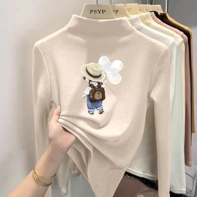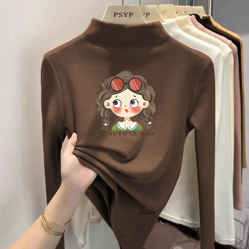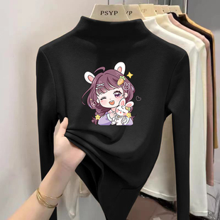 中大儿童T恤舒适女宝宝上衣 小女孩打底衫 秋冬新款 半高领德绒长袖