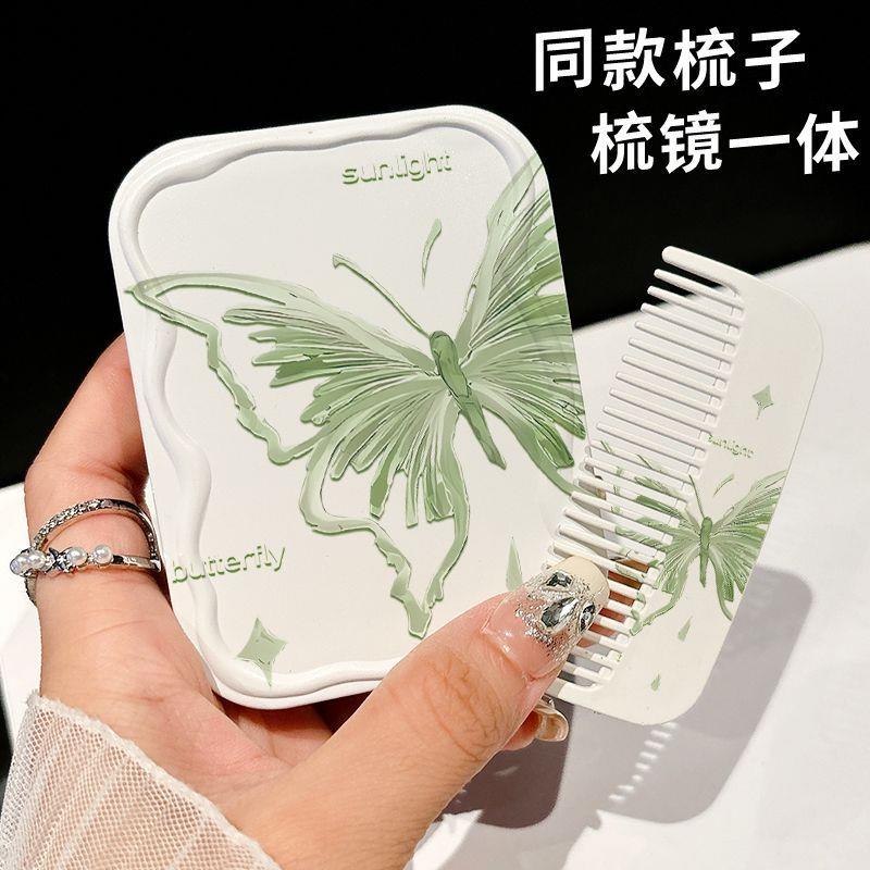 梳子小巧便携随身小镜子ins翻盖式 镜梳一体二合一学生口袋镜小梳