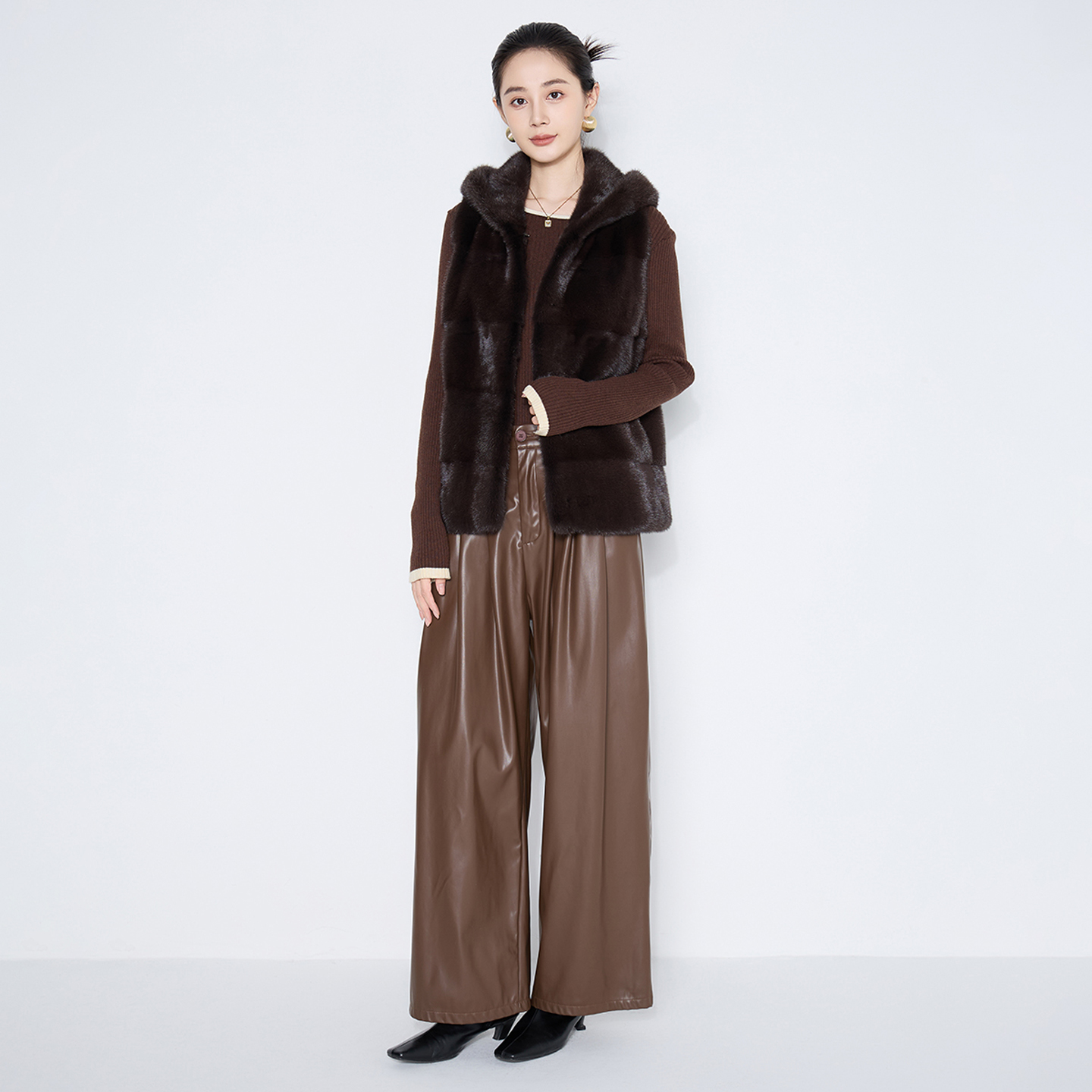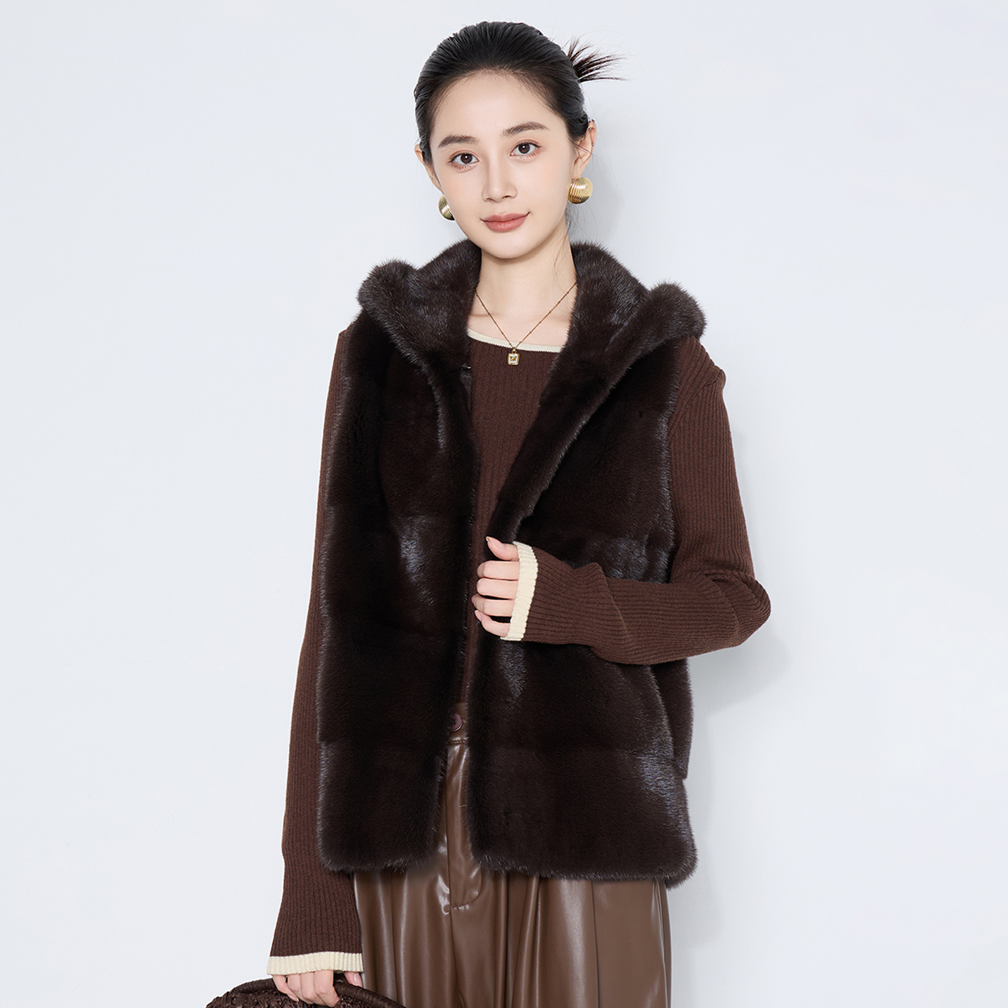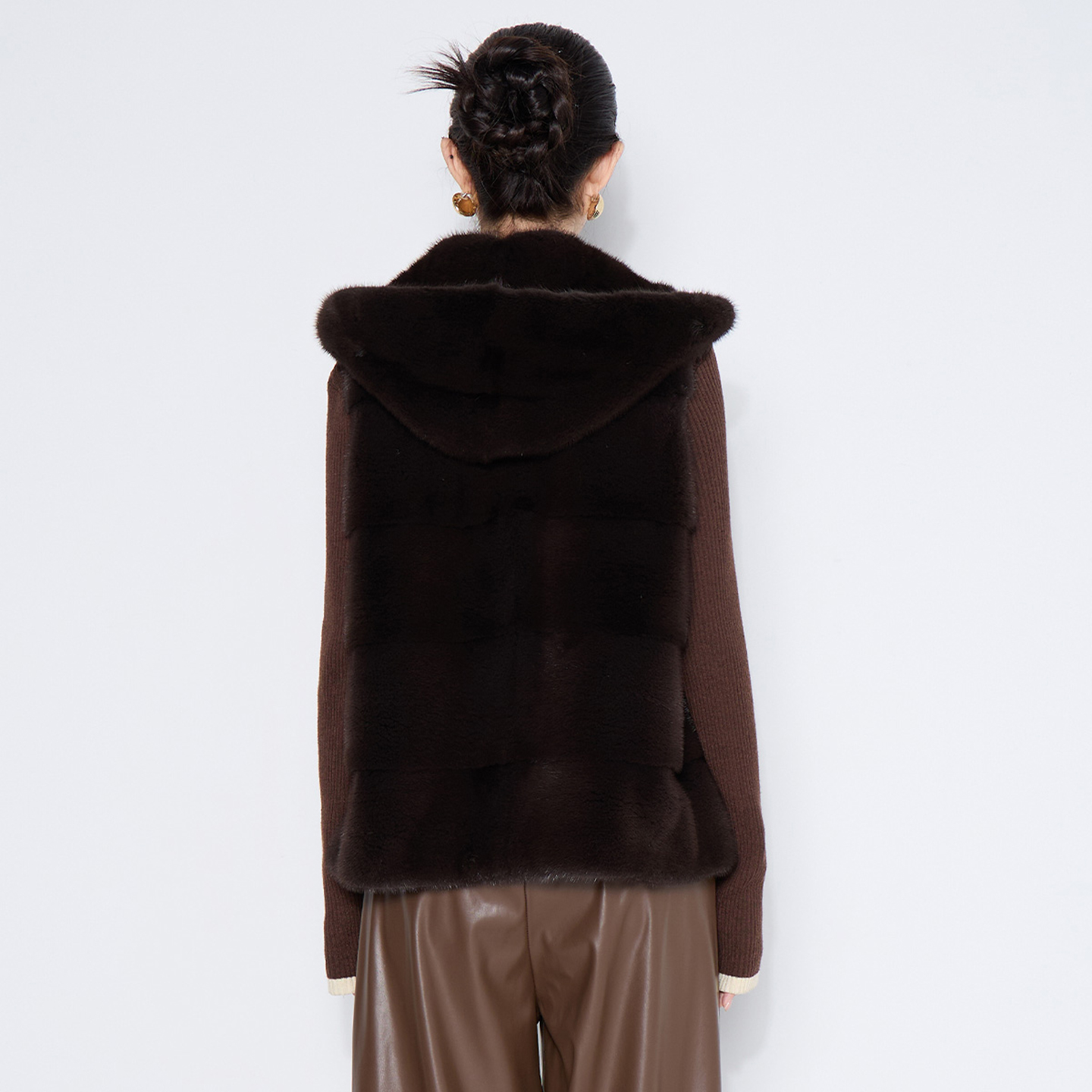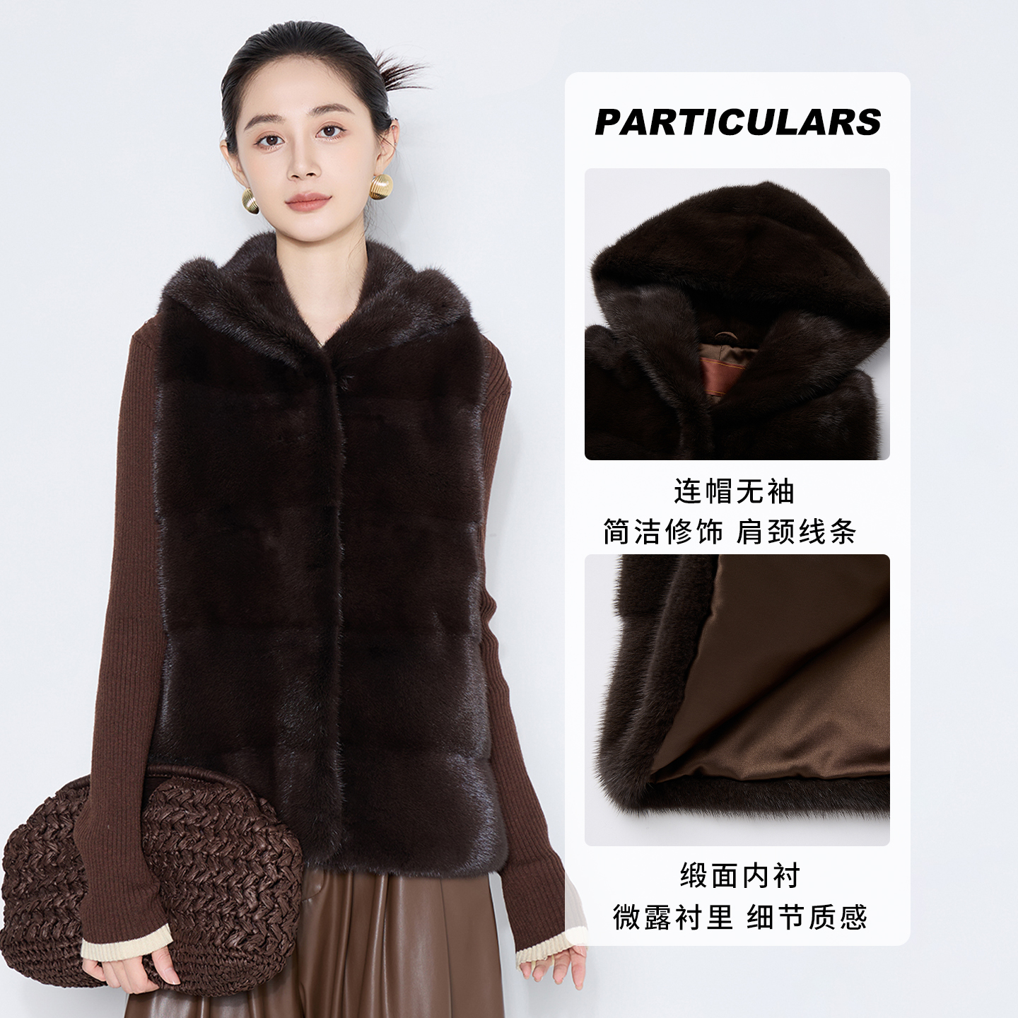 女装 马天奴2025秋冬新款 灰色连帽水貂毛皮草马甲廓形奢华保暖时尚