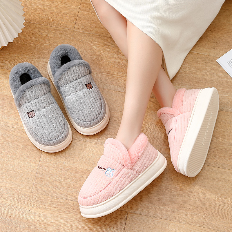 女厚底 居家毛毛绒保暖加厚软底防滑情侣包头拖鞋 棉拖鞋 男秋冬季