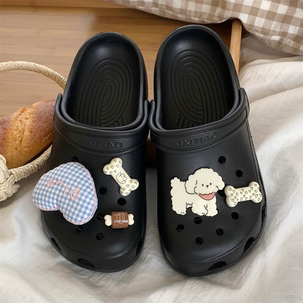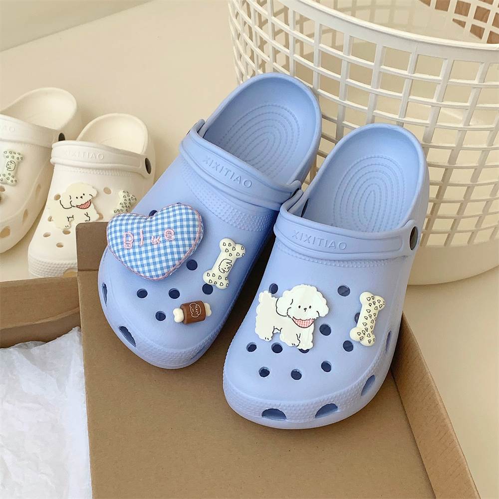 凉拖鞋 百搭防滑两穿男女休闲夏季 韩系可爱小狗情侣洞洞鞋 细细条