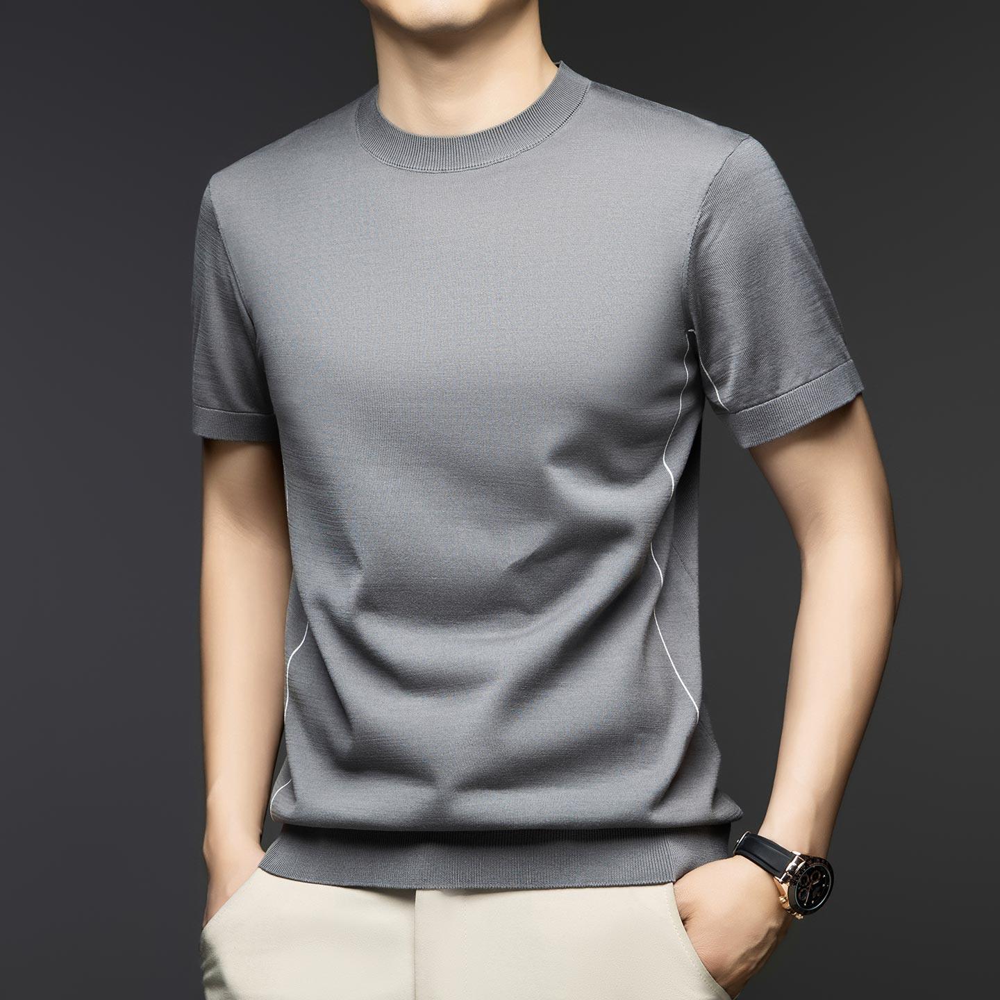 提花针织体恤夏季 保罗官方桑蚕丝醋酸莱赛尔 冰丝薄款 T恤男士 短袖