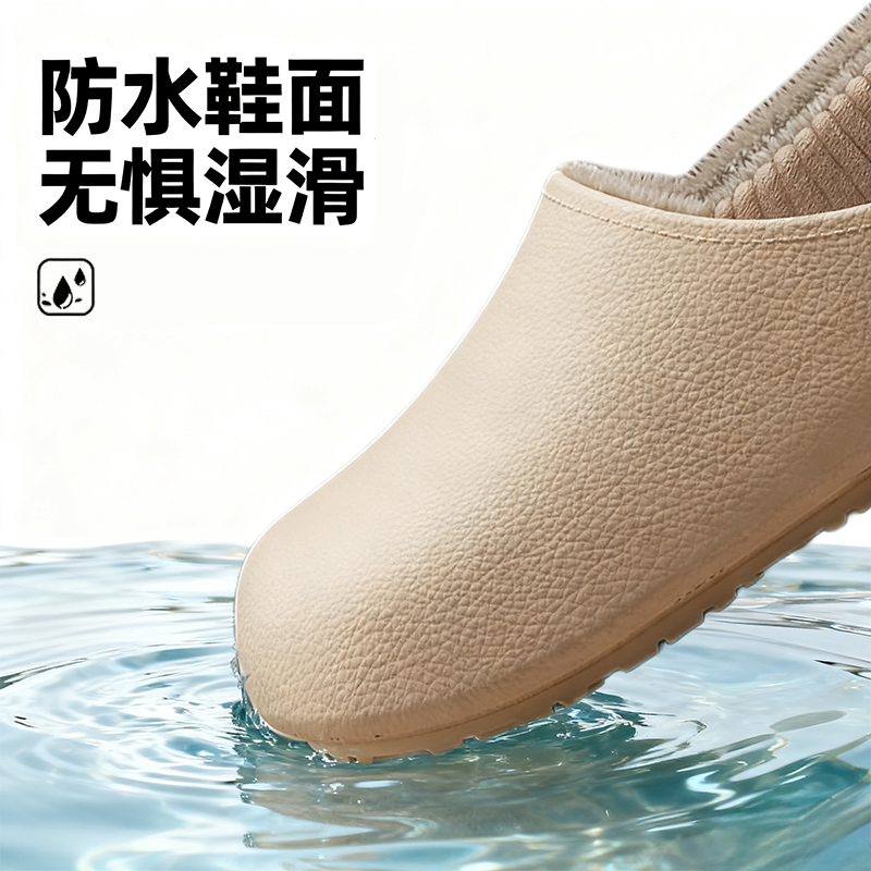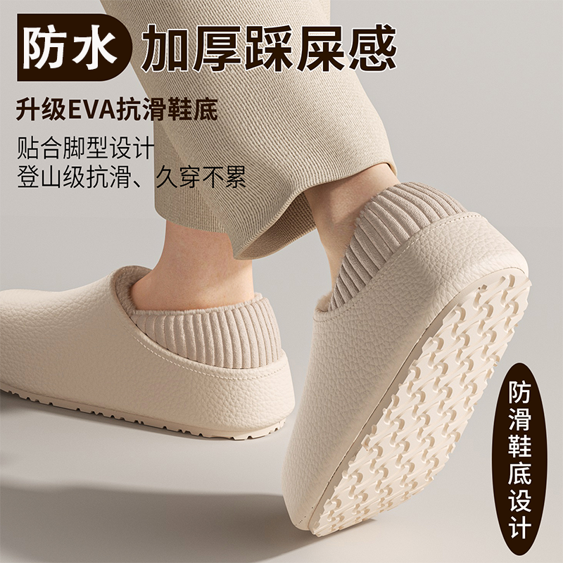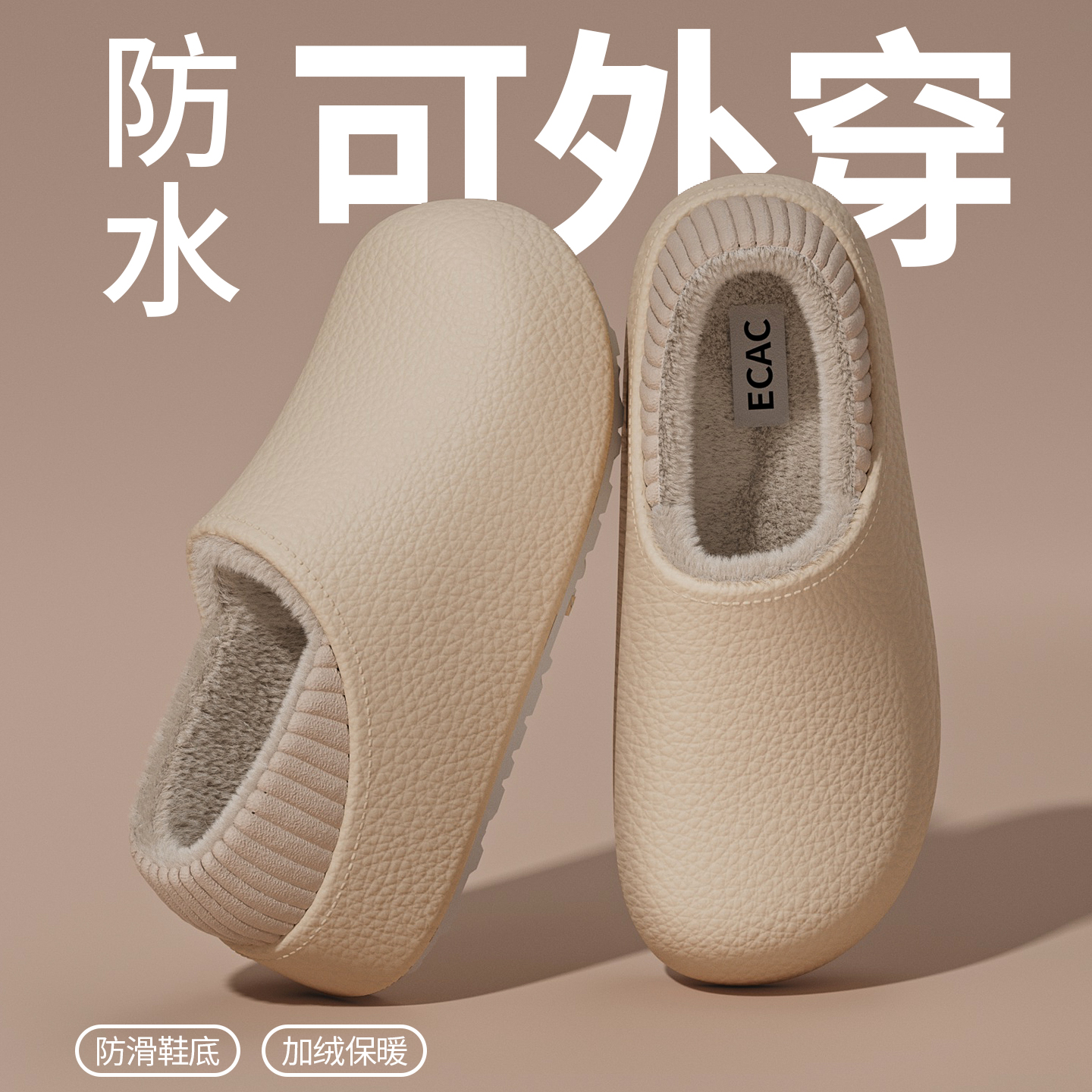 男 室内居家加绒保暖外穿防水防滑厚底全包跟棉鞋 情侣棉拖鞋 女冬季