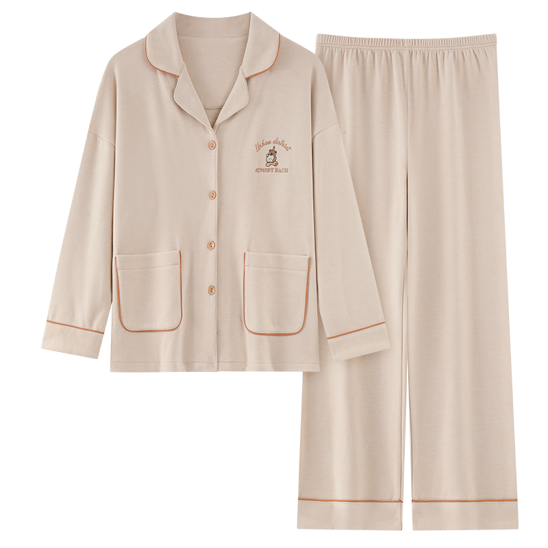 男春秋 带胸垫家居服套装 A类抗菌防螨纯棉情侣睡衣女长袖 红豆夏季