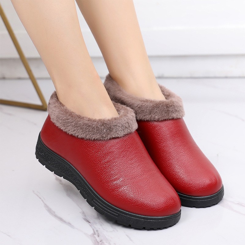 软底皮面中老年人妈妈鞋 女棉靴加绒保暖防水二棉鞋 冬季 老北京布鞋