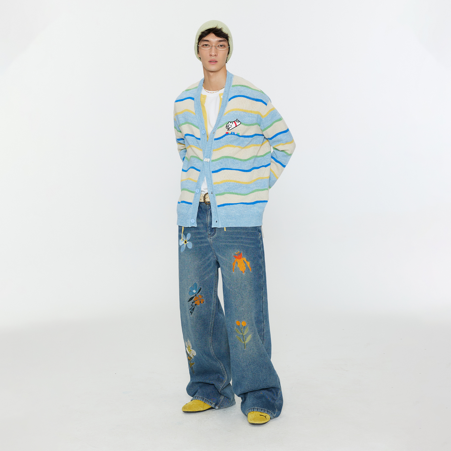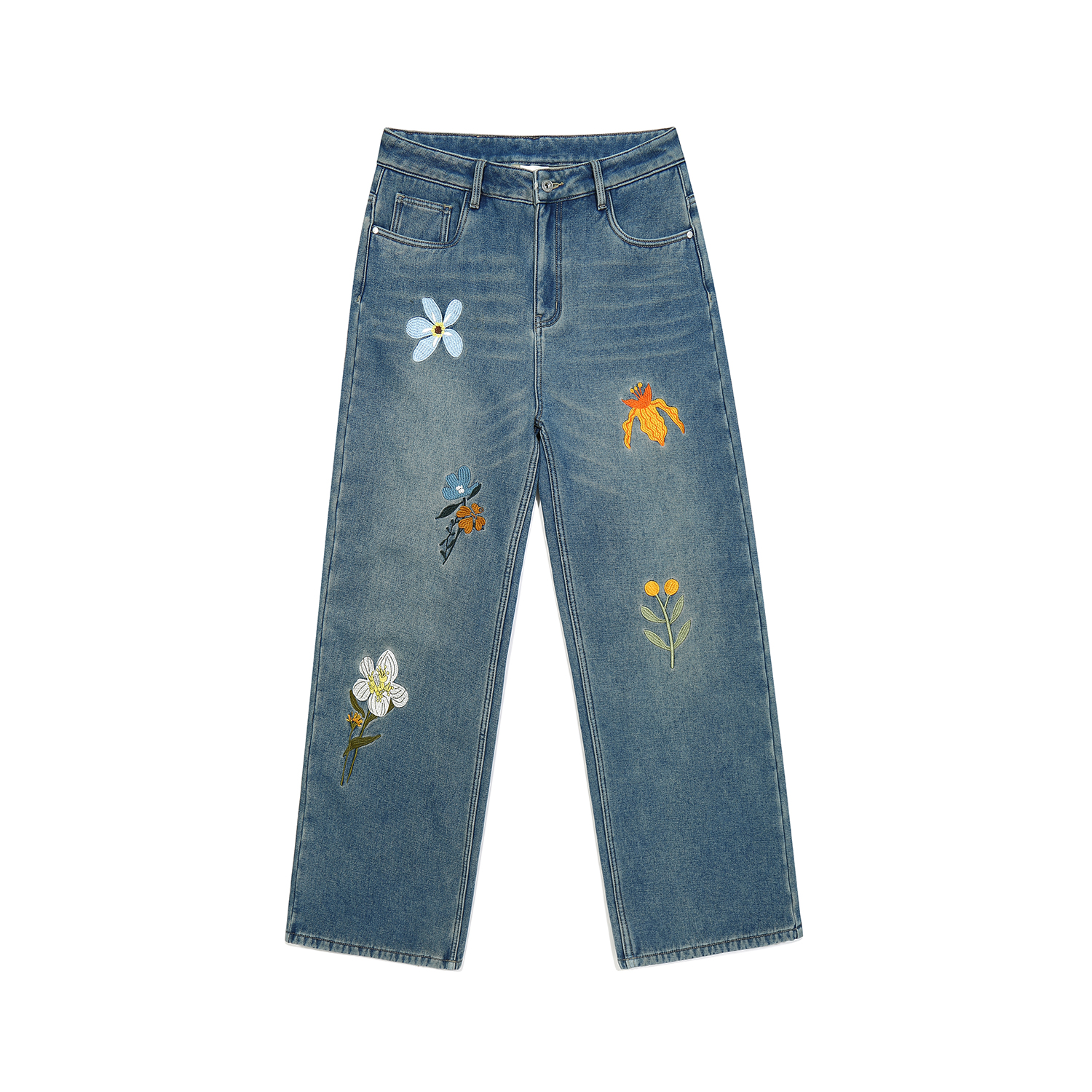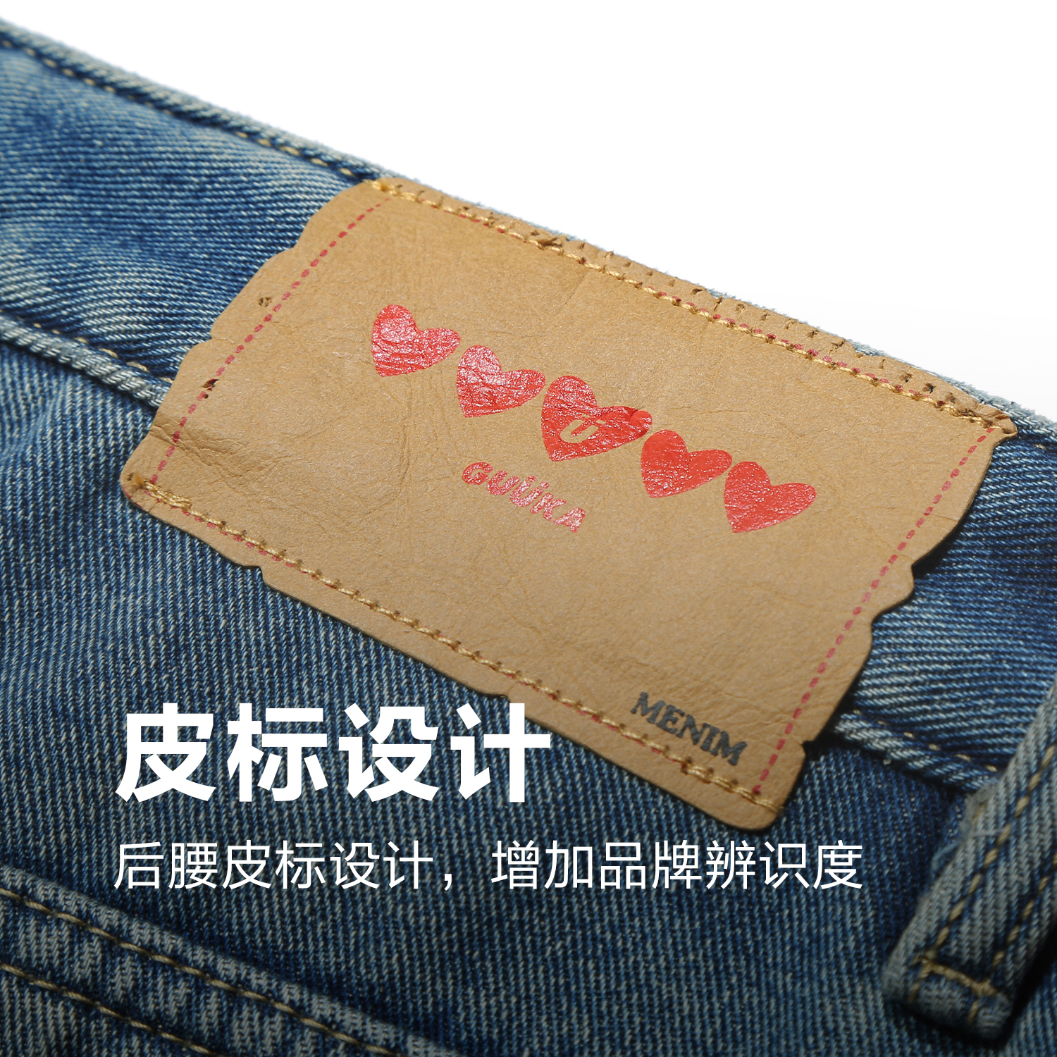 直筒裤 男款 复古冬季 裤 GUULA美式 子花卉刺绣堆堆裤 猫须加绒牛仔裤