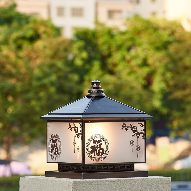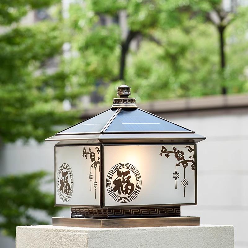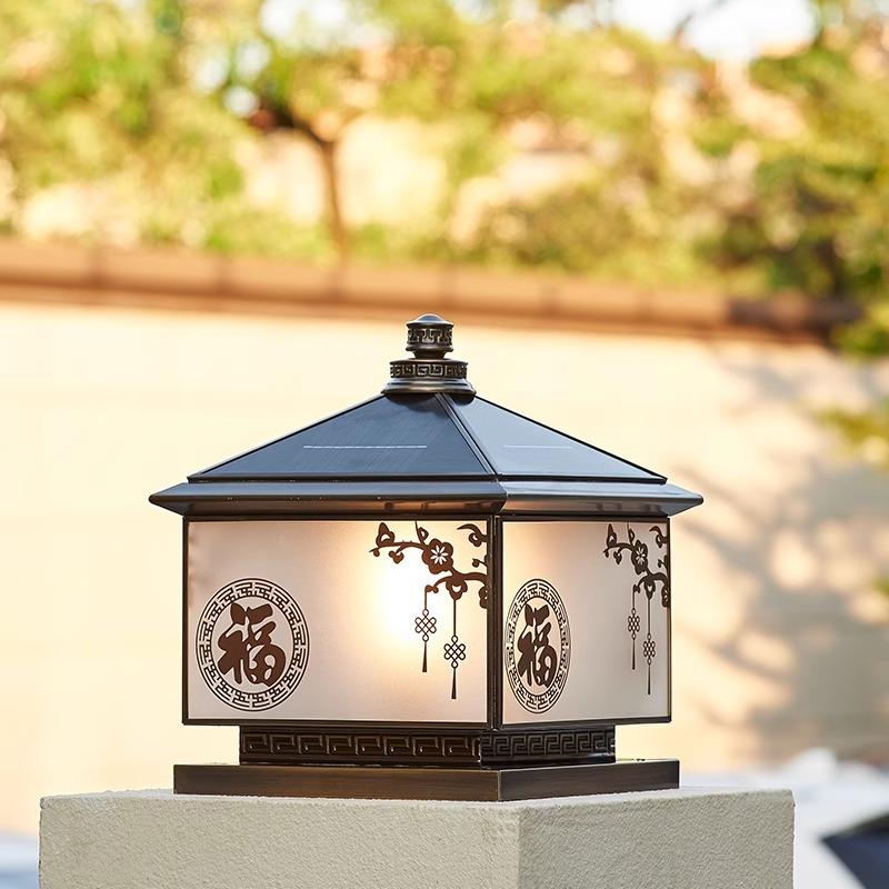 林爵太阳能柱头灯户外别墅庭院大门柱子灯新中式 门柱围墙灯接电款