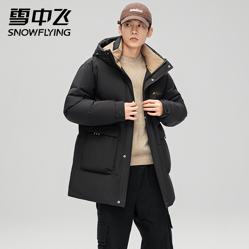 FLYING 羽绒服加厚休闲服时尚 雪中飞新款 连帽中长款 保暖 男士 SNOW