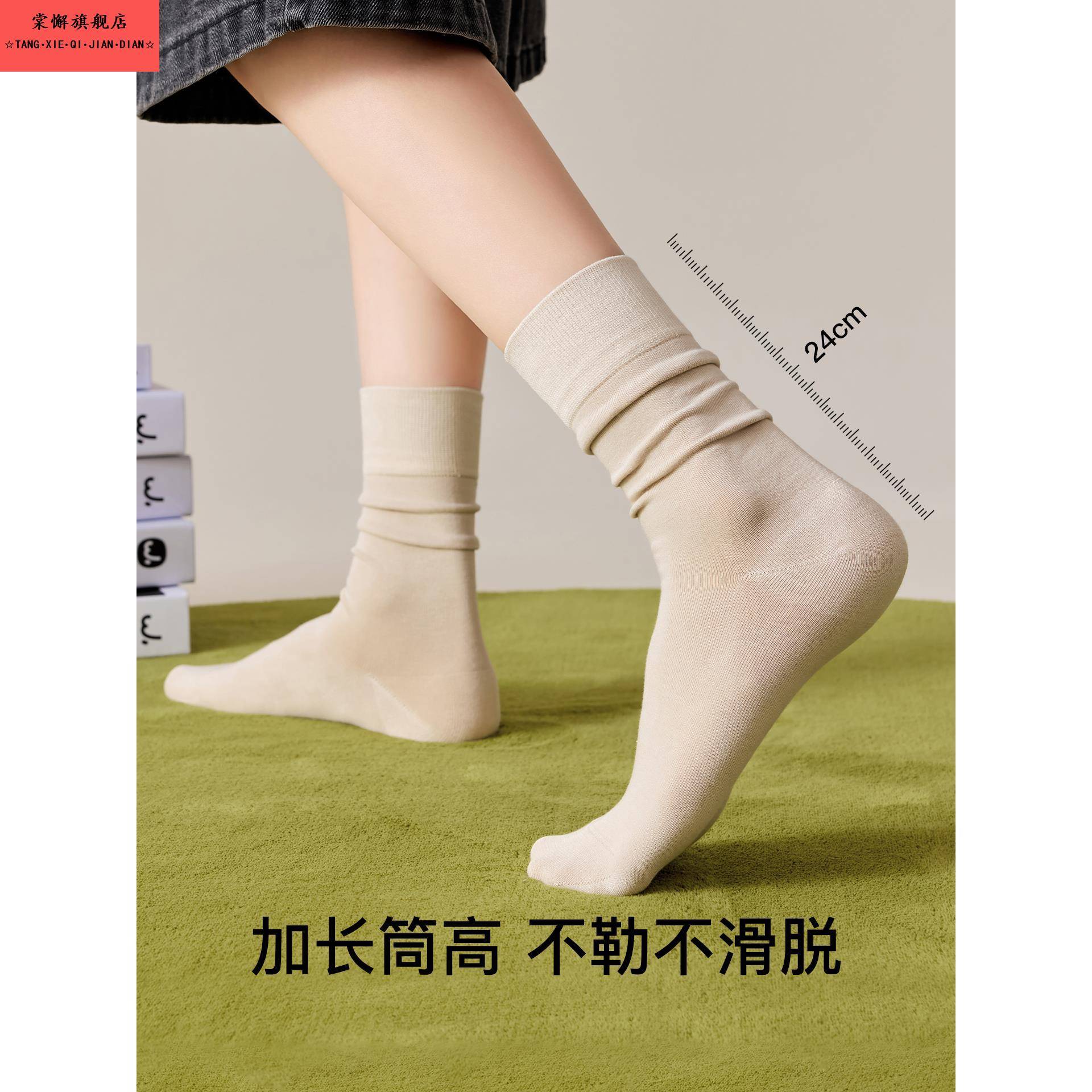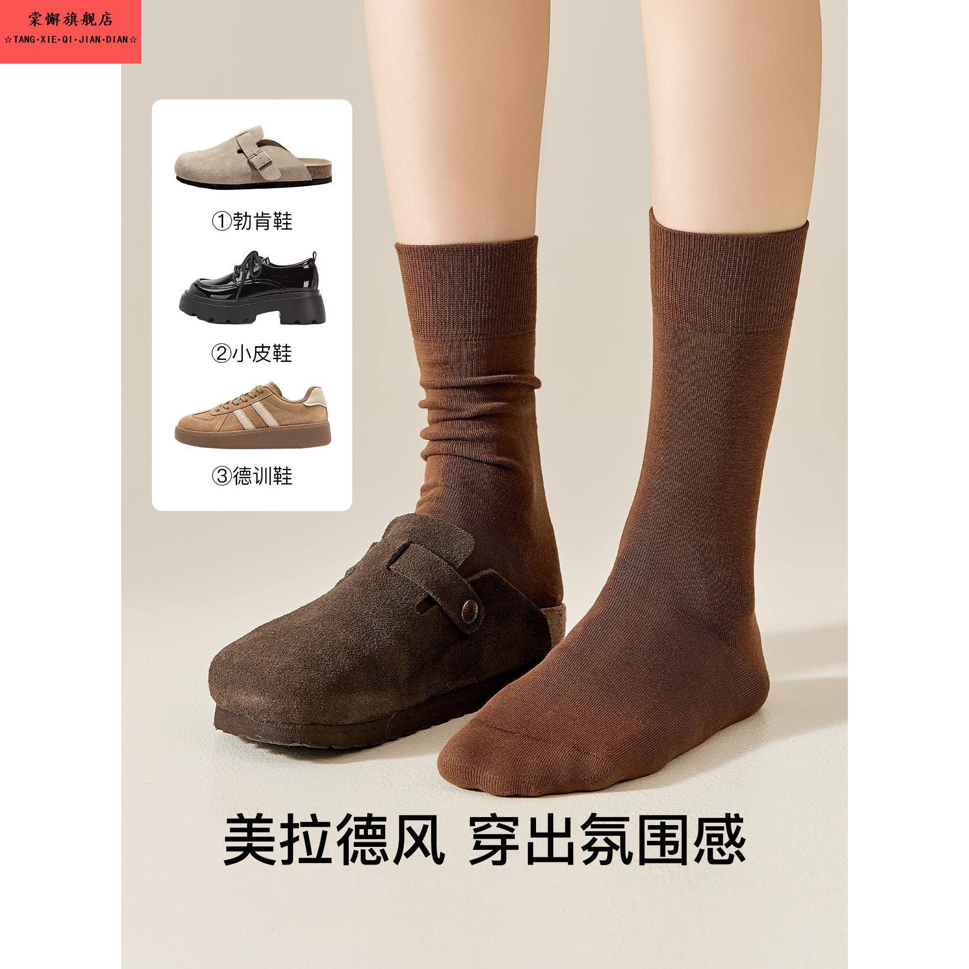 美拉德袜子女秋冬款 防臭堆堆袜纯棉咖色中筒袜无骨月子袜搭勃肯鞋