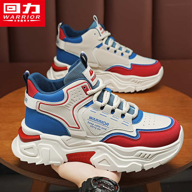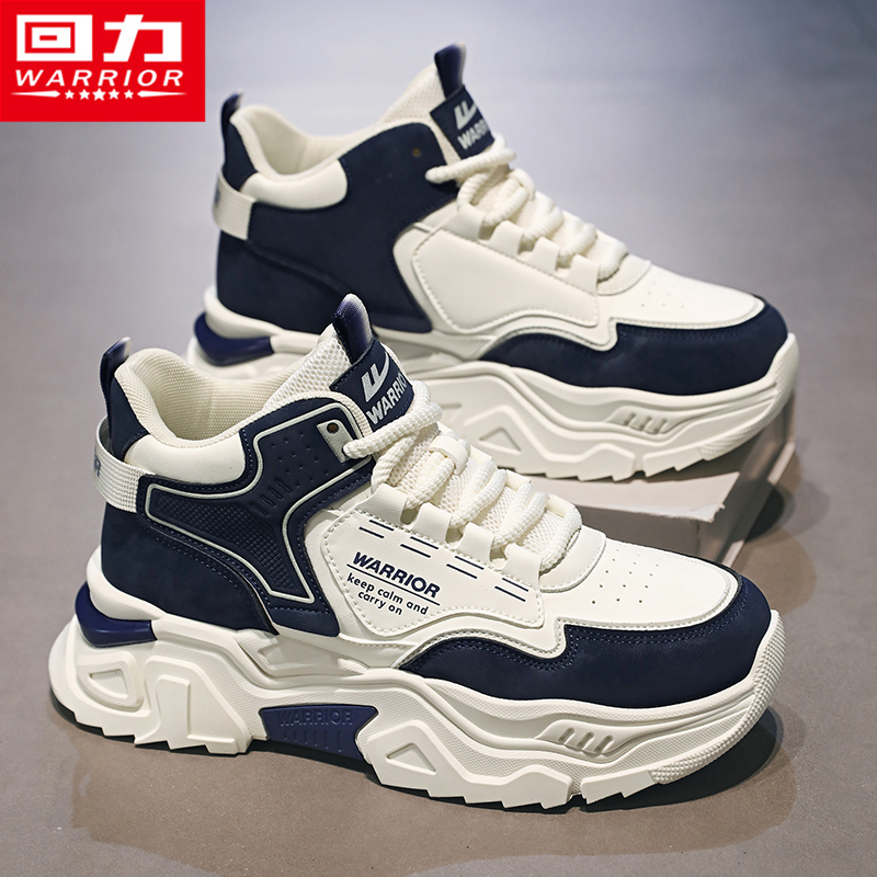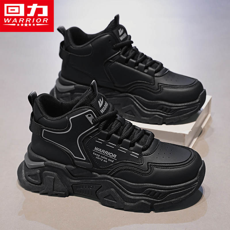 百搭休闲皮面防水青少年跑步运动篮球增高老爹鞋 森马高帮男鞋 秋季