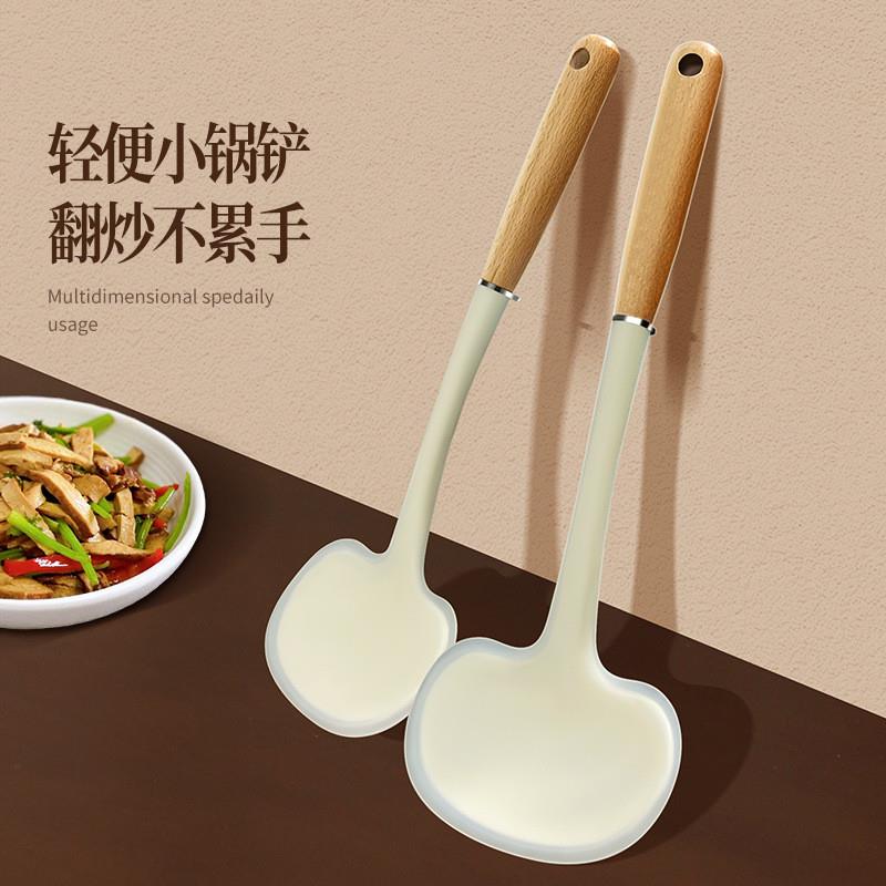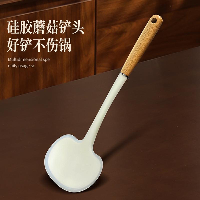木锅铲不粘锅专用硅胶锅铲蘑菇铲家用木柄把食品级耐高温小号炒菜