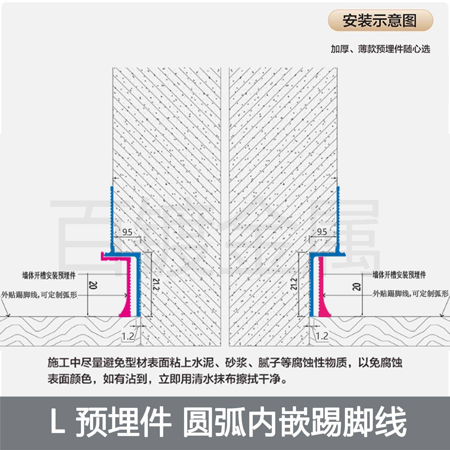 铝合金预埋内嵌踢脚线隐形暗装 墙角线任意折弯L平贴地脚线 批灰款