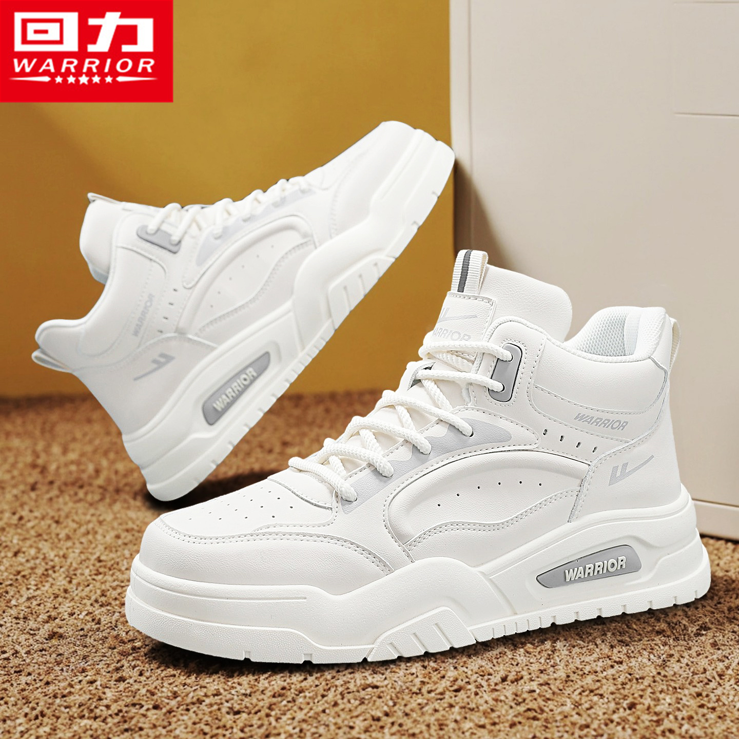 运动小白潮鞋 防滑防水皮面百搭学生休闲厚底板鞋 秋季 回力高帮男鞋