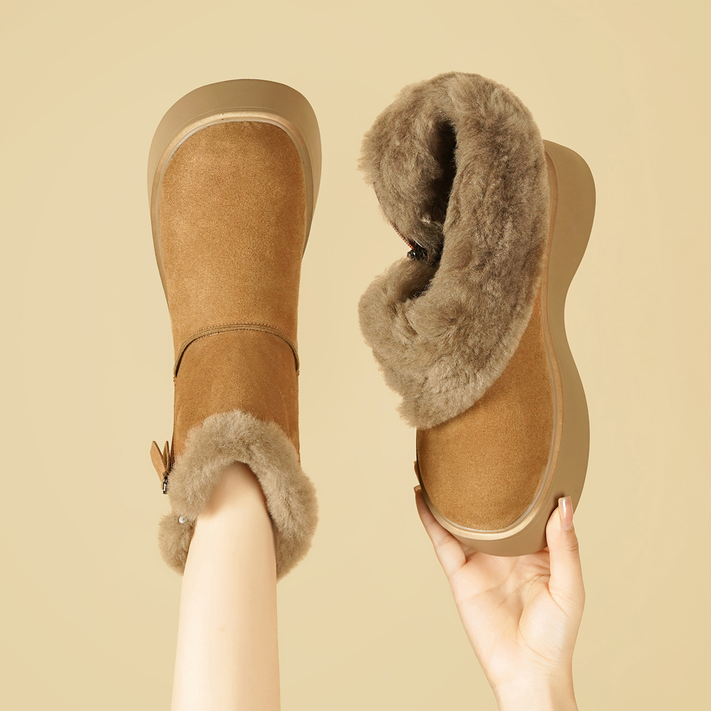 女靴子 皮毛一体毛毛靴加绒加厚外穿棉鞋 厚底保暖雪地靴女冬季 新款