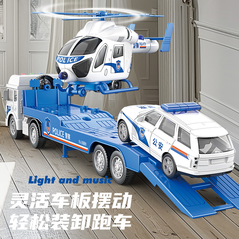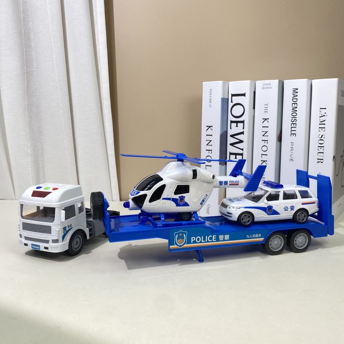 大号儿童警察讲故事拖车消防运输车惯性平板玩具直升飞机男孩