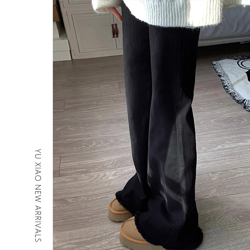 子 胖mm弹力显瘦喇叭裤 黑色梨型身材毛边微喇牛仔裤 女秋冬加绒大码