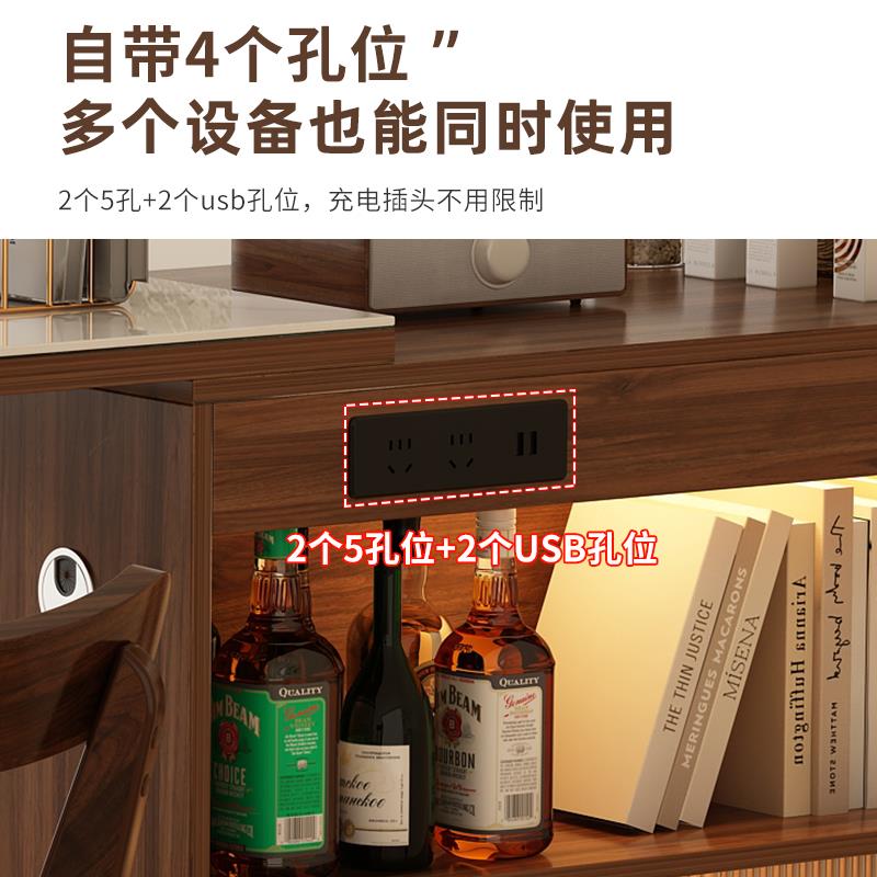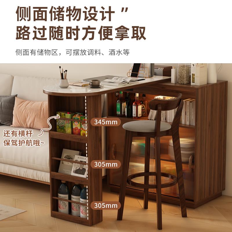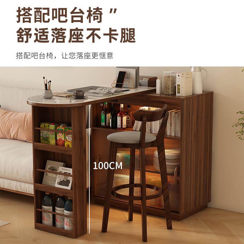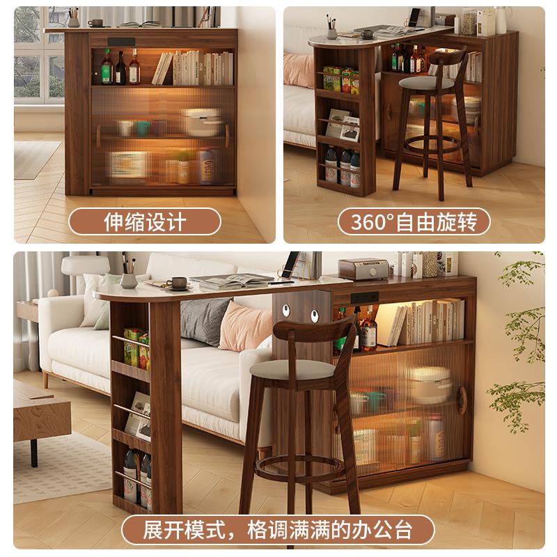 实木吧台桌伸缩阳台休闲小吧台家用餐边柜一体樱桃木色橱柜隔断柜
