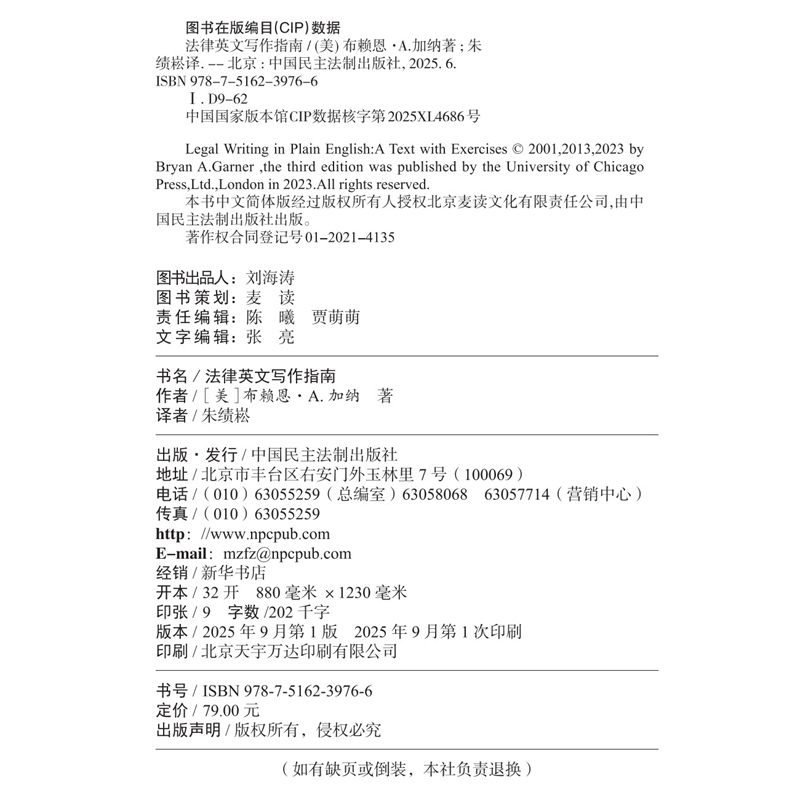 布赖恩·A.加纳 著 社 法律英文写作指南 9787516239766 中国民主法制出版 美 译 2025新书 朱绩崧