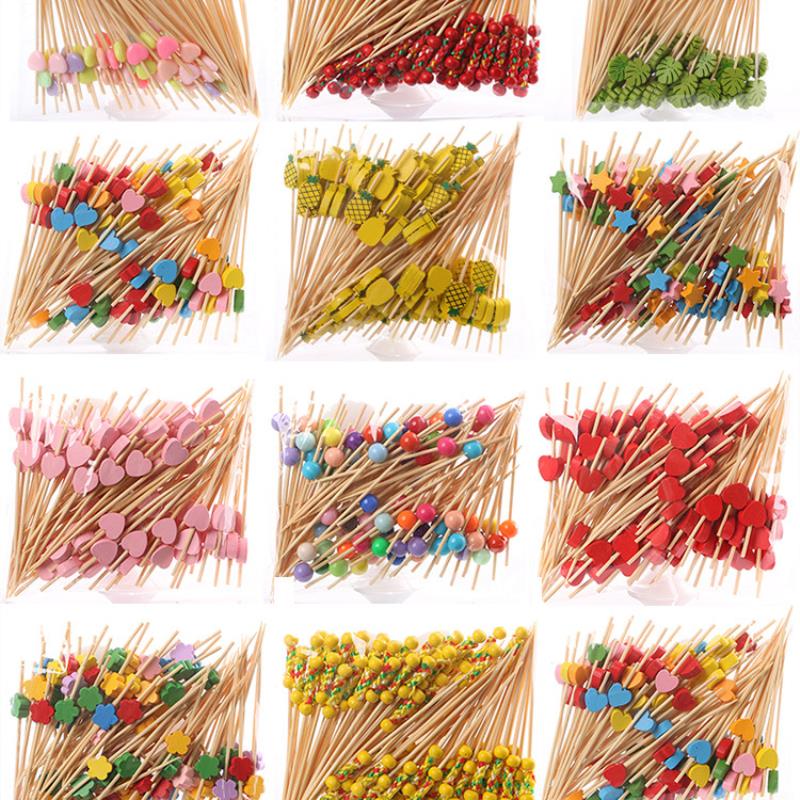 水果签果插一次性水果牙签叉子ktv创意鸡尾酒签装 饰花签艺术竹签