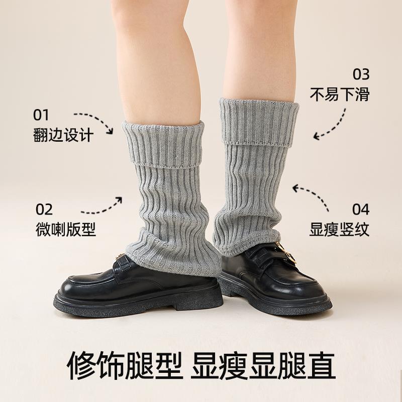 冬季 腿套加羊毛袜套女秋保暖白色针织竖纹小腿堆堆袜 胖mm粗腿大码