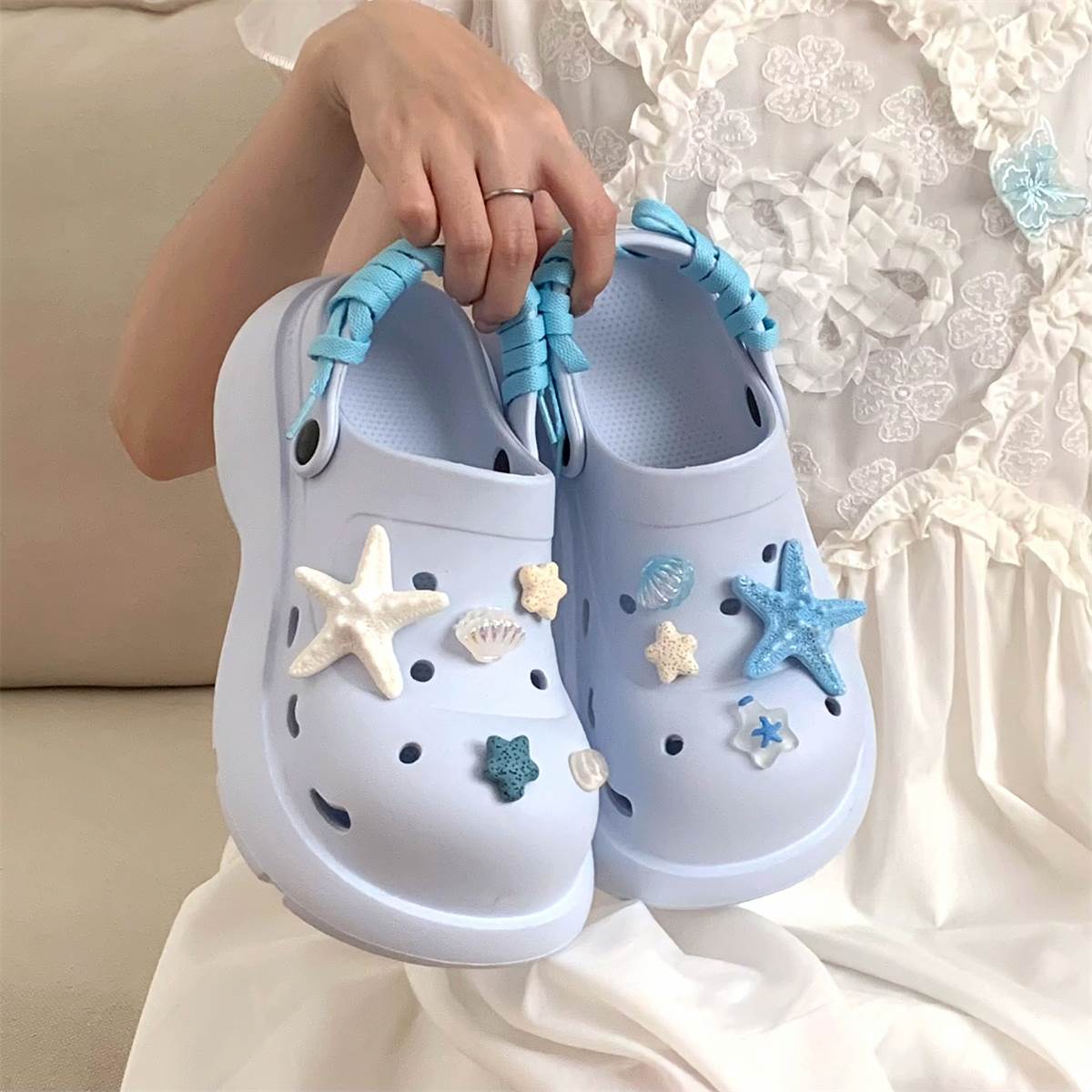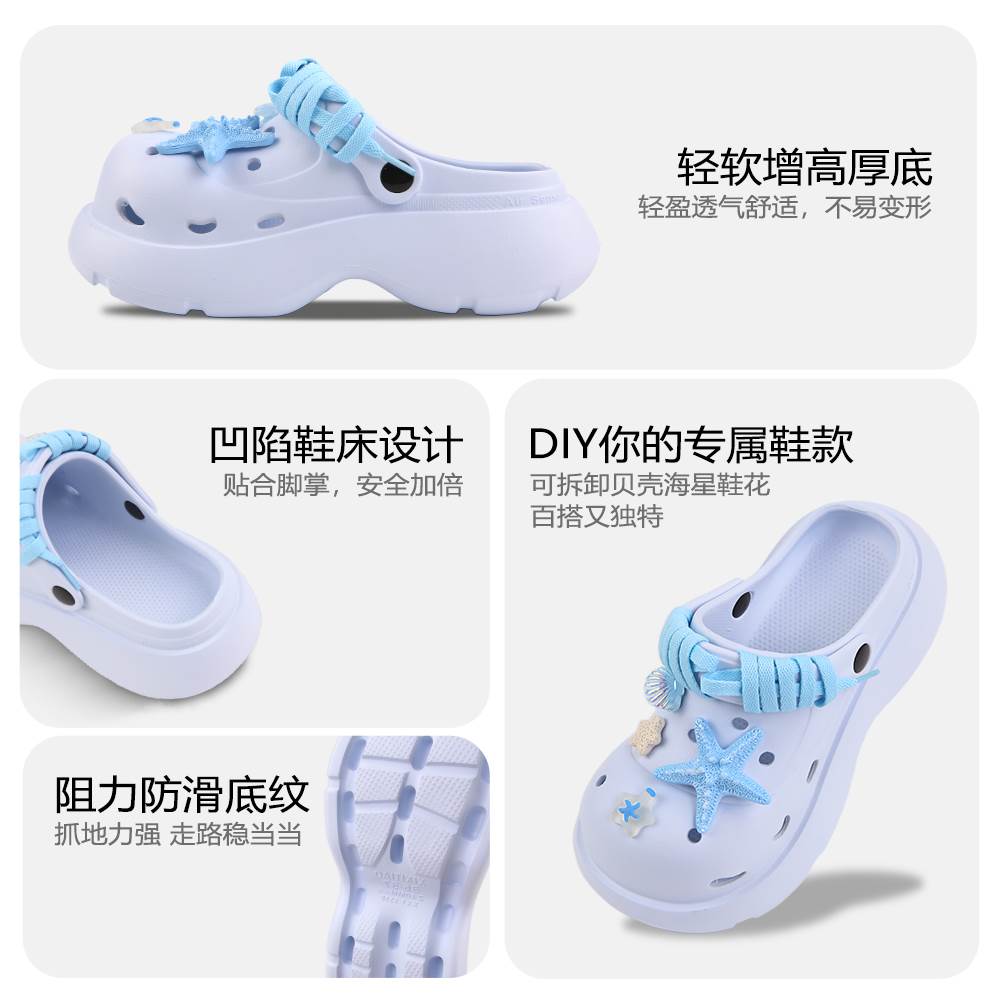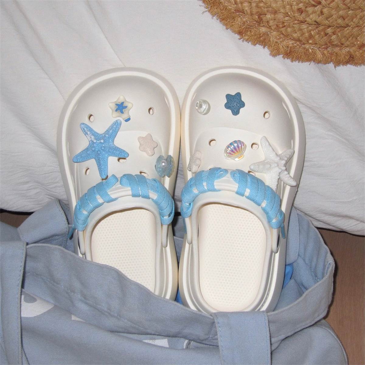 女diy海星贝壳夏季 鞋 户外防滑两穿洞洞 海边度假沙滩凉拖鞋 细细条