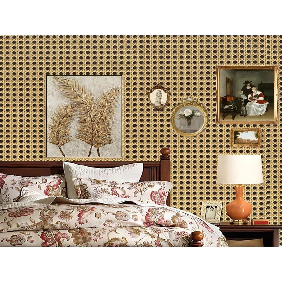 藤编贴纸柜子翻新家具自粘衣柜改造墙纸竹编纹壁纸防水防潮贴装 饰