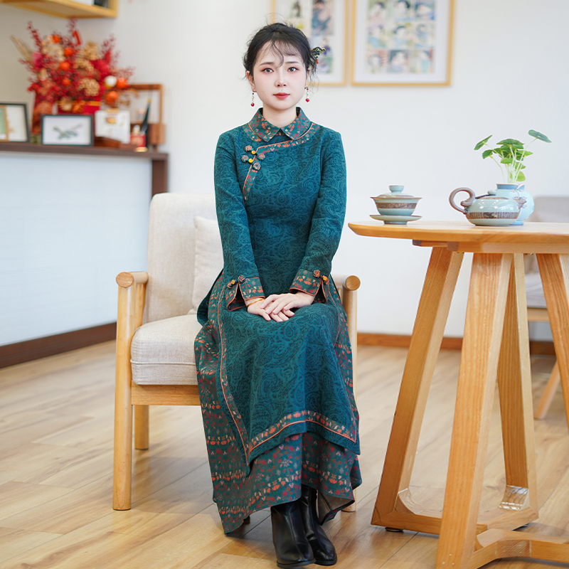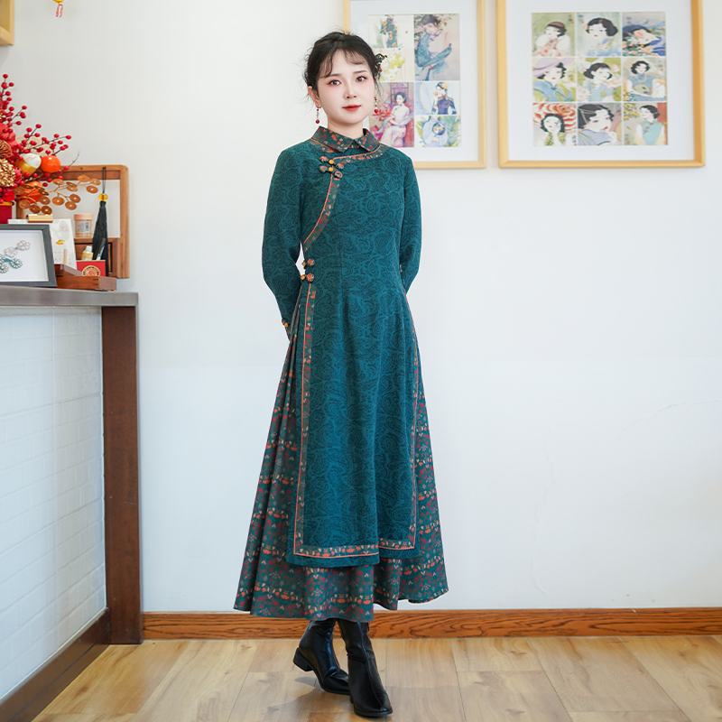 如意风奥黛新中式 改良旗袍女收腰显瘦日常中国风高端连衣裙23R159