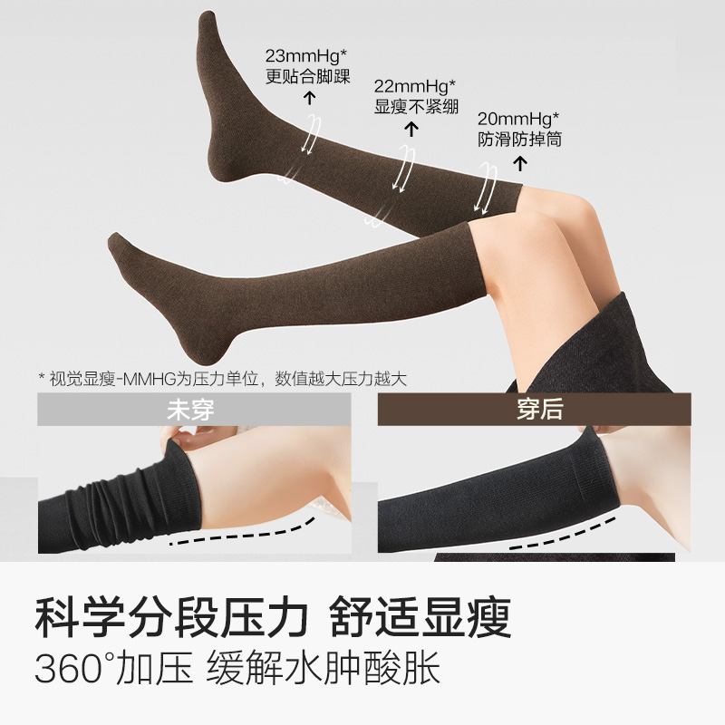 压力小腿袜子女款 轻塑过膝棉袜 长筒袜强力瘦腿强压显瘦不勒春秋季