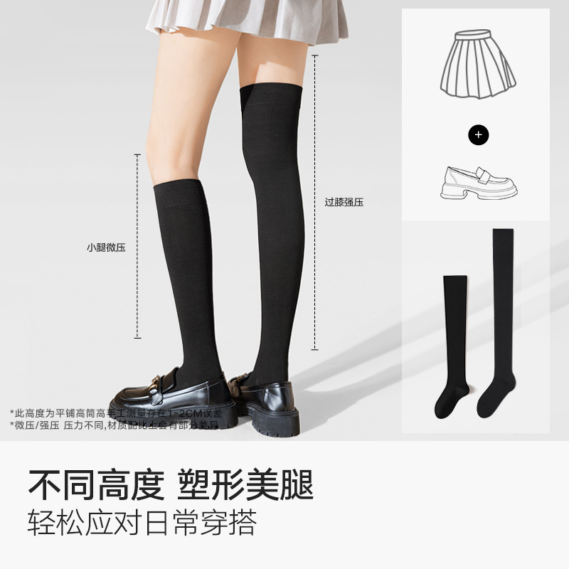 压力小腿袜女夏季 强压黑色过膝长筒袜配裙子中筒jk高筒瘦腿袜春秋