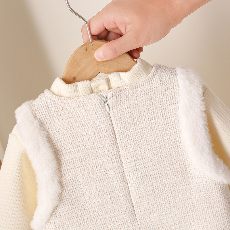 小香风初冬装 婴儿秋冬套装 背带裙套装 加绒打底衫 女宝宝深秋季